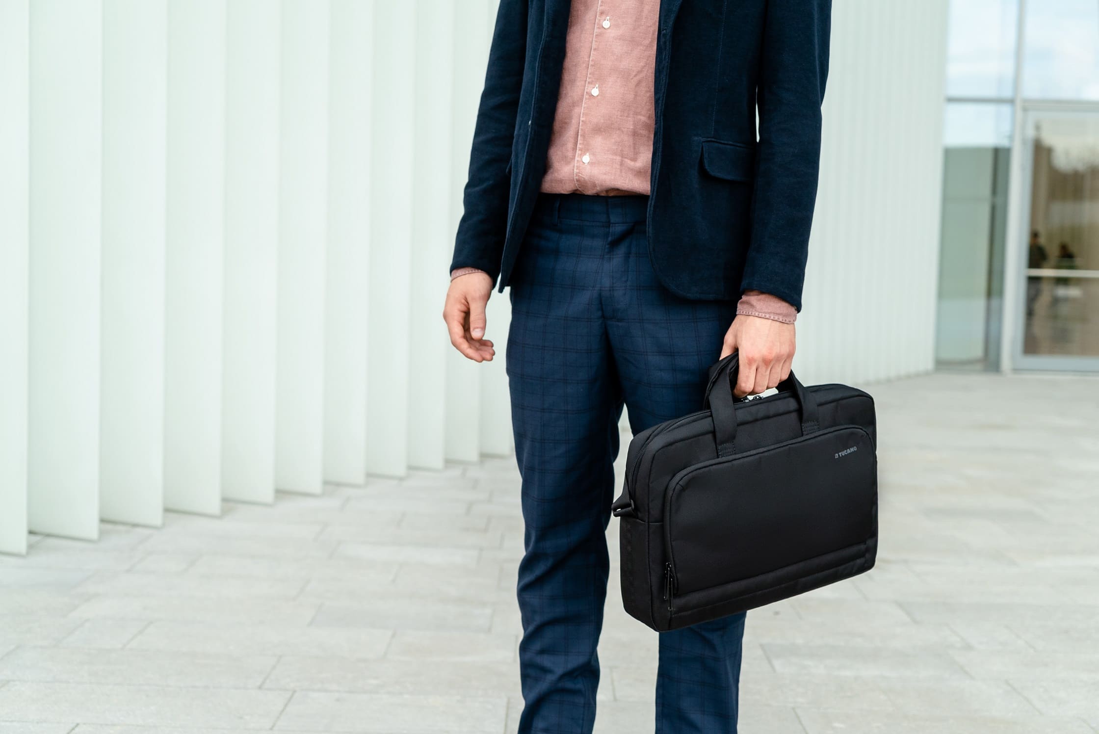Tucano Star BSTN-BK — компактна та легка сумка-книжка для ноутбуків 15.6" та MacBook Pro 15/16". Виготовлена з міцного зносостійкого поліестеру, з м'яким внутрішнім відділенням для ноутбука та сітчастою кишенею на блискавці. Передня кишеня-органайзер для смартфона та аксесуарів, регульований плечовий ремінь. Вага всього 0.42 кг, розміри 40 × 29.5 × 8.5 см. Стильний чорний дизайн для щоденного використання.
