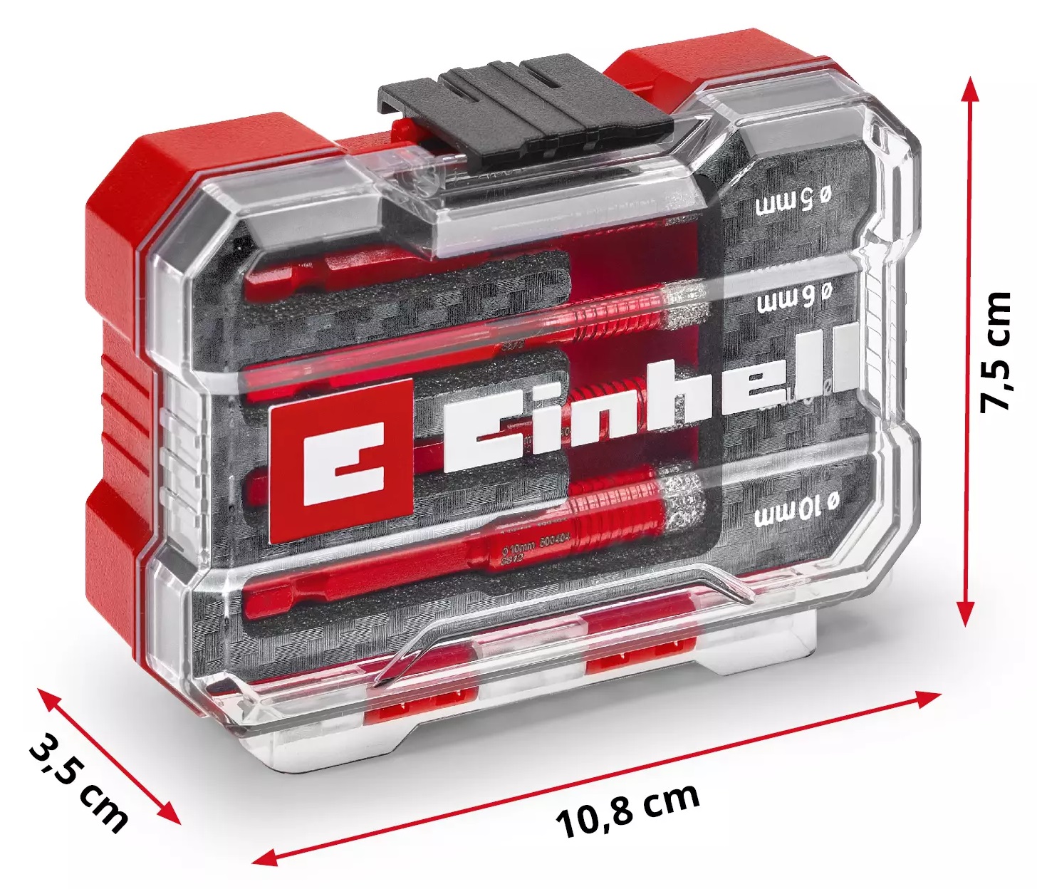 Характеристики Свердло по кахелю та склу трубчате Einhell 5/6/8/10мм XS-Case набір 4шт 0.12кг код товару 500404