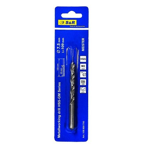 Опис Сверло по металлу S&R Meister HSS 7.5x69x109 мм код товару 108800750