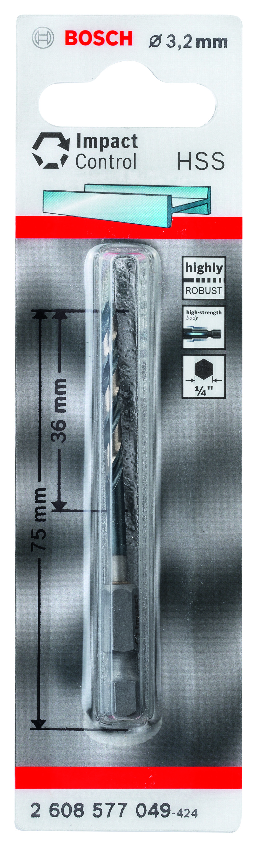 Опис Сверло по металлу 3,2 мм з шестигранним хвостовиком Impact Control BOSCH (2608577049) код товару 2608577049