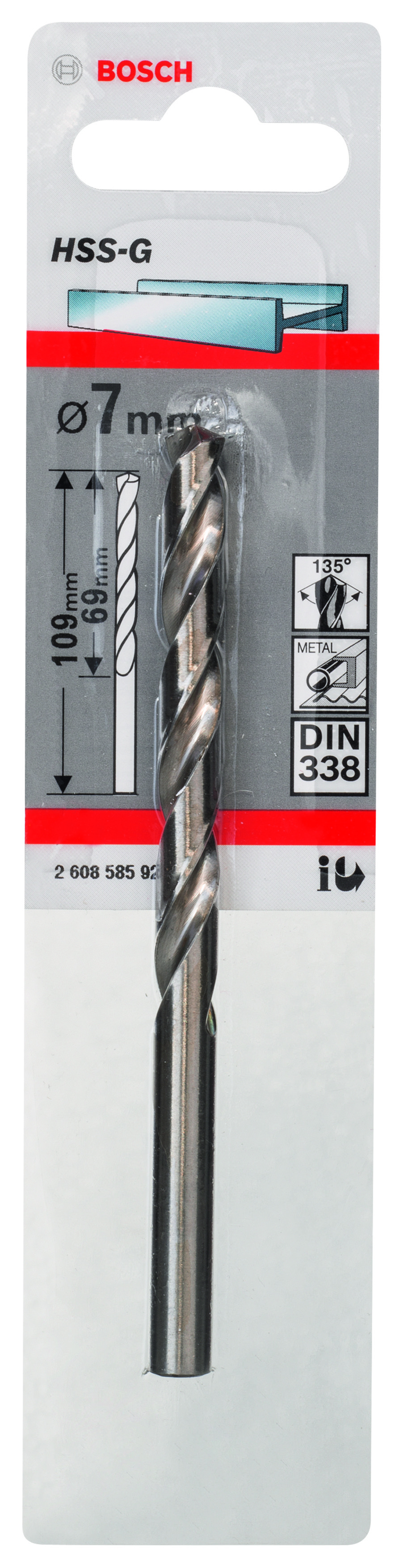 Опис Сверло по металлу HSS-G 7 мм 1 шт. BOSCH (2608585929) код товару 2608585929
