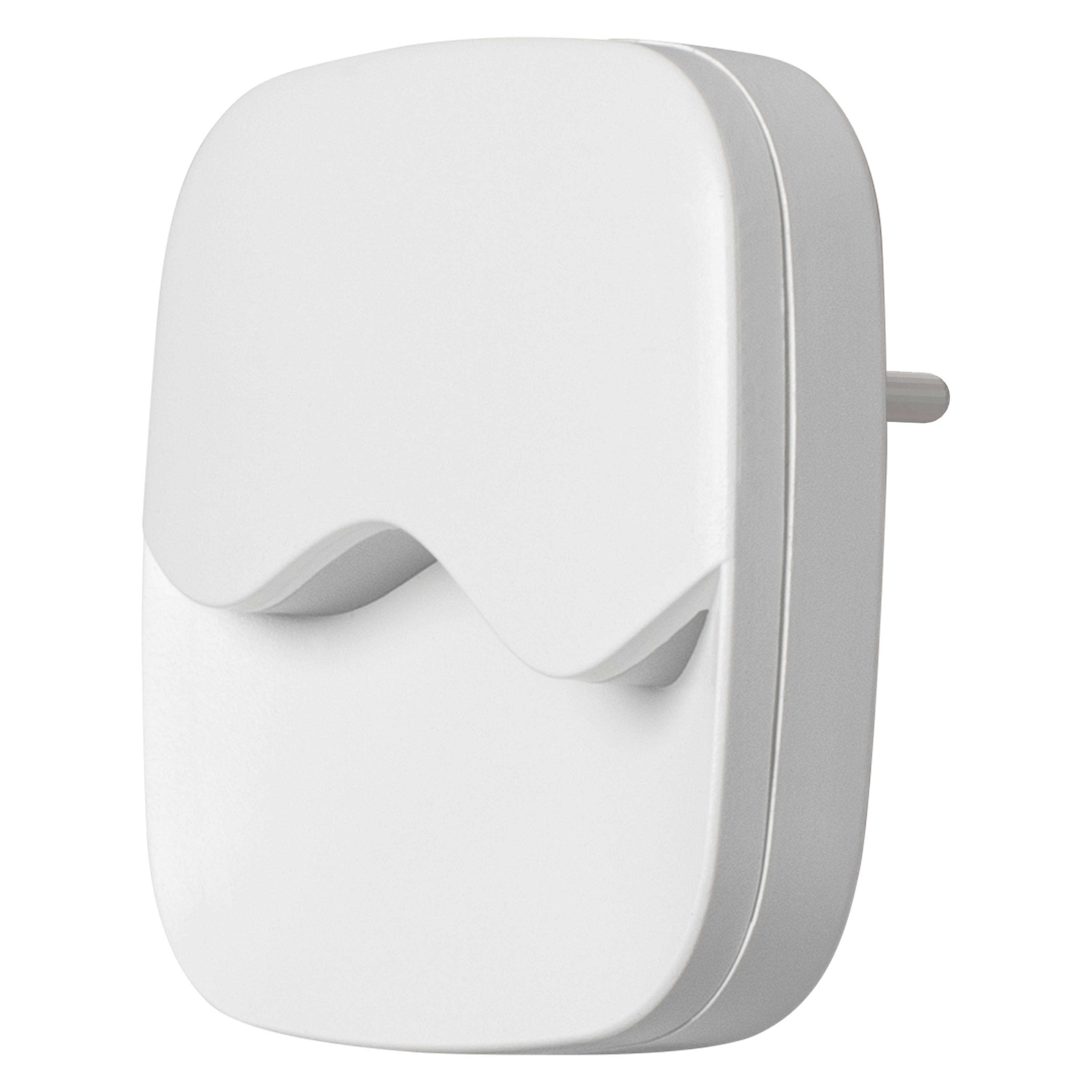 Світильник-нічник OSRAM LUNETTA WAVE 0,5 Вт 3000 K 5 лм — компактний LED нічник для розетки типу C (EU) з теплим білим світлом 3000 K. Автоматично вмикається та вимикається залежно від рівня освітленості завдяки вбудованому денному/нічному датчику, створюючи орієнтаційне та декоративне освітлення в дитячих кімнатах та інших житлових приміщеннях.