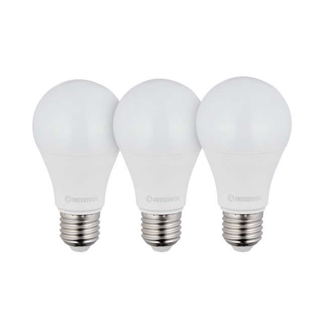 Опис Лампи світлодіодні, набір з 3 шт. LL-0015, LED A60, E27, 12 Вт, 150-300 В, 4000 К, 30000 год, гарантія 3 роки INTERTOOL LL-3015 код товару LL-3015