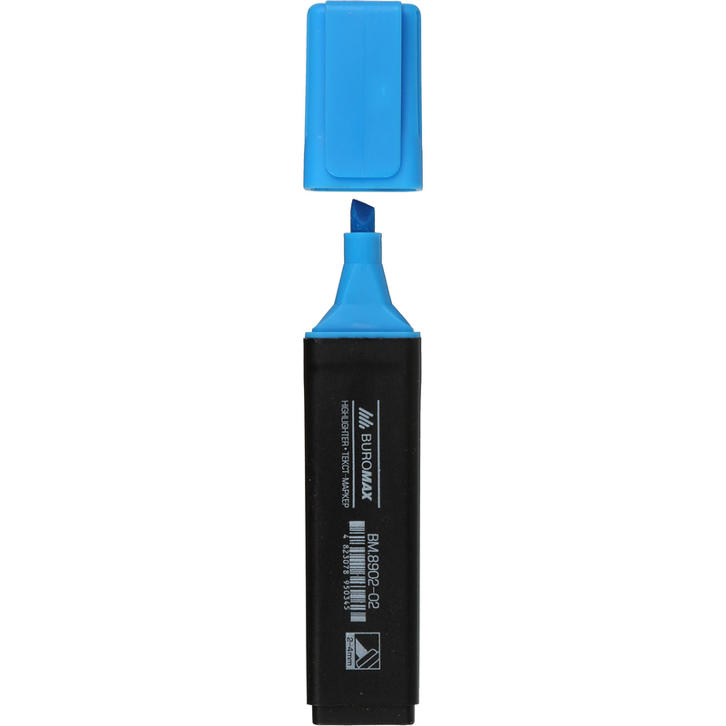 Високоякісне чорнило текстових маркерів BUROMAX спеціально розроблене для зручного та легкого виділення тексту на різних видах паперу. За допомогою тестових маркерів BM. 8902 можна швидко виділити як рукописний текст на папері різної товщини, так і текст на факсовому папері, а також текст, надрукований за допомогою будь-яких різновидів принтерів та за допомогою копіювальних апаратів.Чорнила маркерів BM.8902 не розмазують текст, що виділяється, залишають слід, що дозволяє прочитати виділений текст під кольоровим шаром маркера. Чорнило не просочується навіть через тонкі сорти паперу.Зносостійкий пишучий вузол з гладким пористим клиноподібним наконечником забезпечує насичену і чітку лінію листа товщиною від 2 до 4 мм, яка може змінюватись в залежності від нахилу маркера. Написи легко та плавно лягають на папір, що робить процес використання маркера BUROMAX максимально комфортним.Вузол і наконечник, що пише, витримують високі показники тиску і натиску без втрати функціональних властивостей. Корпус з первинного PP (поліпропілену) не пропускає повітря до стрижня, не допускає його швидке висихання та забезпечує можливість тривалого зберігання та використання маркера. Завдяки чорнилу на водній основі сліди від маркера легко змиваються практично з усіх видів тканин, а також різних поверхонь. Відсутність хімічного запаху разом із безпечною водною основою робить процес використання текстового маркера BUROMAX комфортним та придатним для навчання, професійних та побутових потреб.