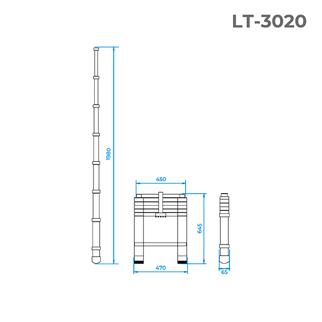 Характеристики Лестниця алюмінієва телескопічна 6 ст. 1.9м INTERTOOL LT-3020 код товару LT-3020