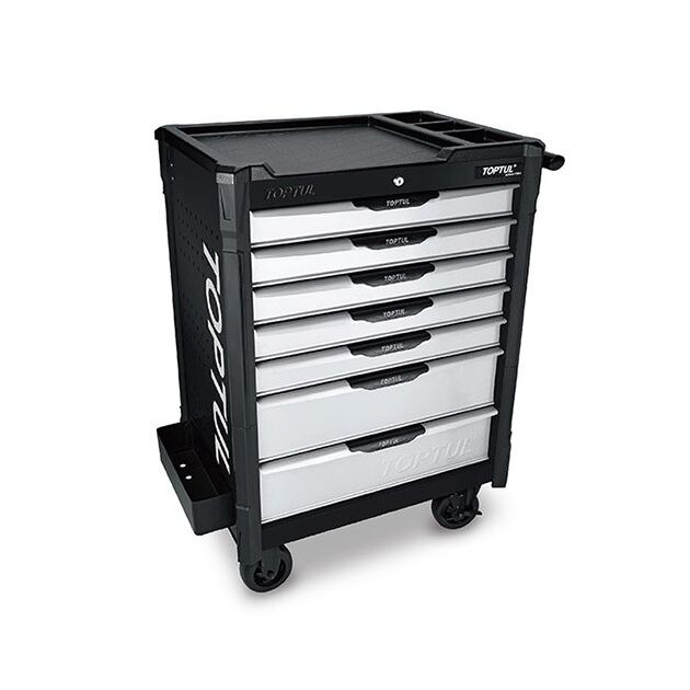 Пересувна тележка з інструментом TOPTUL GE-21351 має 7 секцій, забезпечує зручний доступ до інструментів. Чорний колір, міцна конструкція, ідеальна для професіоналів та майстрів.