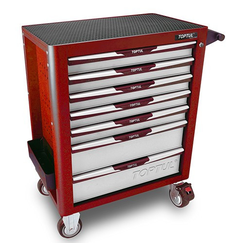 Тележка Pro-Plus з інструментом на 7 секцій червона TOPTUL GCAJ305H – зручний та практичний інструмент для майстерень. Містить різноманітні інструменти, забезпечує організацію та легкий доступ.