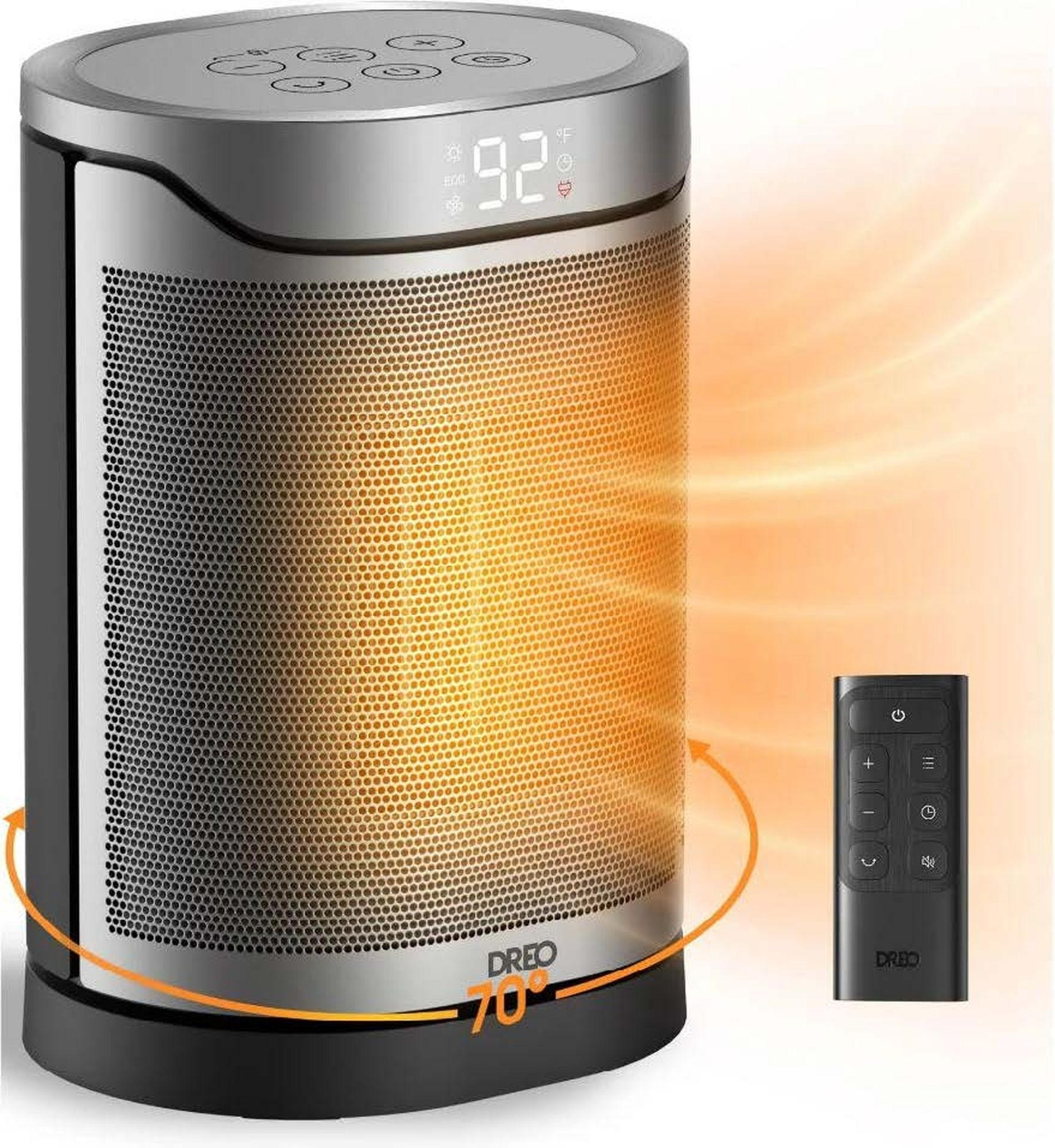 Тепловентилятор Dreo DR-HSH018 — це компактний та сучасний обігрівач із керамічним нагрівальним елементом потужністю 1500 Вт. Він ефективно обігріває приміщення до 20 м², забезпечуючи стабільний і швидкий нагрів за дві секунди. Електронне керування, LED-дисплей і пульт ДУ роблять використання зручним, а три швидкісні режими дають змогу обрати комфортну інтенсивність роботи. Модель має стильний сріблястий корпус, низький рівень шуму та повний набір систем безпеки.