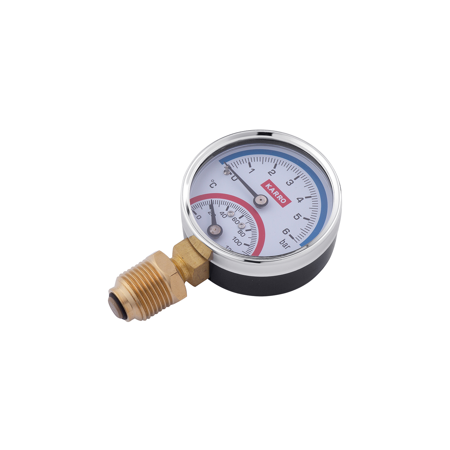 Термоманометр Karro - надійний помічник у контролі температури та тиску. Ідеально підходить для систем опалення, водопостачання та промислових застосувань. Висока точність вимірювань, довговічність та простота використання - ось що робить його незамінним у вашому арсеналі.