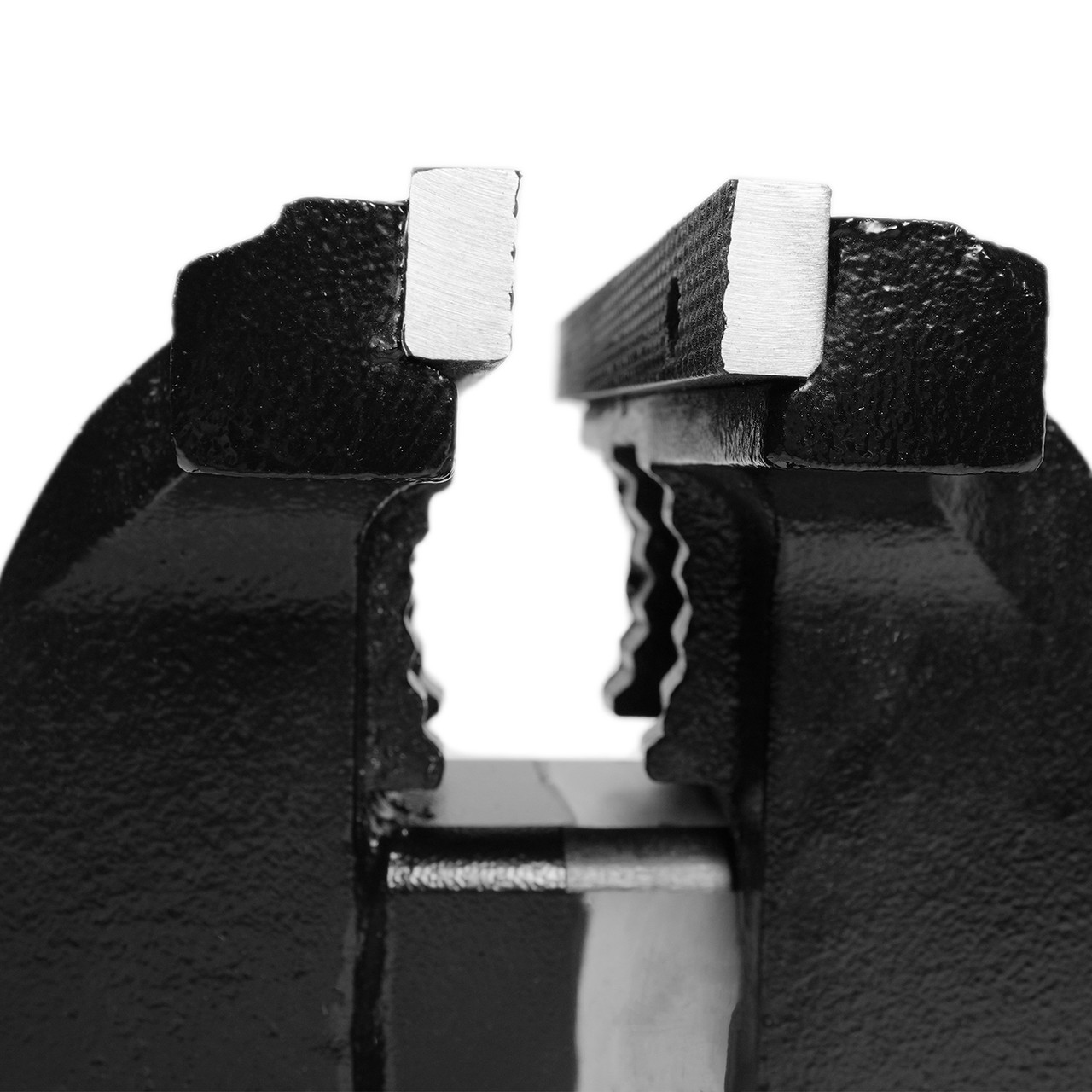 Поворотный механизм: позволяет вращать тиски на 360°, обеспечивая удобство работы под любым углом.