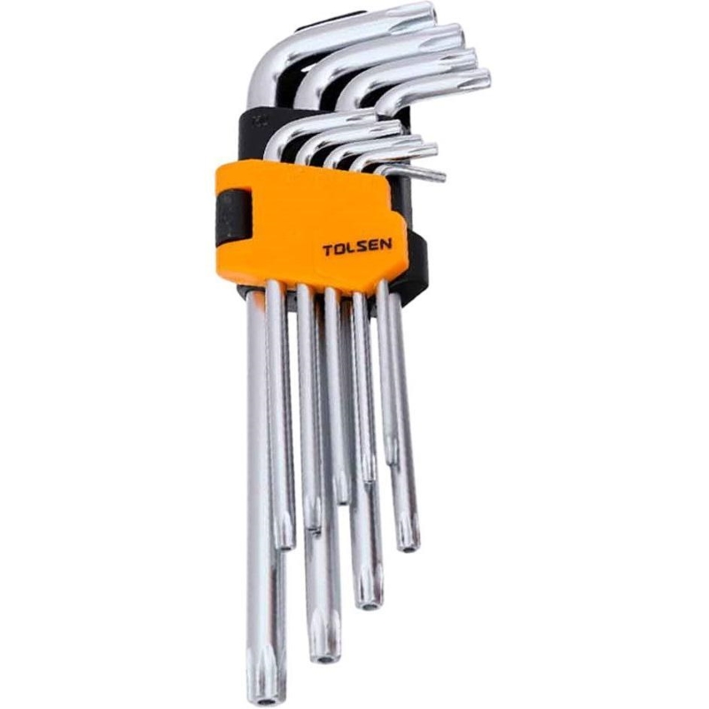 Tolsen Ключі шестигранні, набір 9шт, подовжені, довгі, кулястий наконечник, Тorx 10-50, CrV