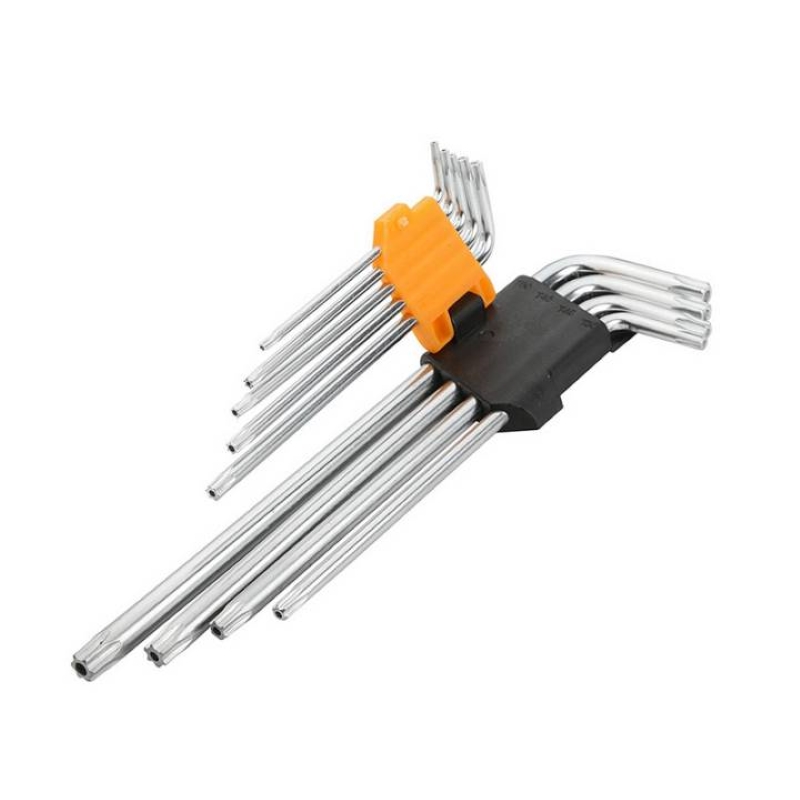 Опис Tolsen Ключі шестигранні, набір 9шт, подовжені, довгі, кулястий наконечник, Тorx 10-50, CrV код товару 20057
