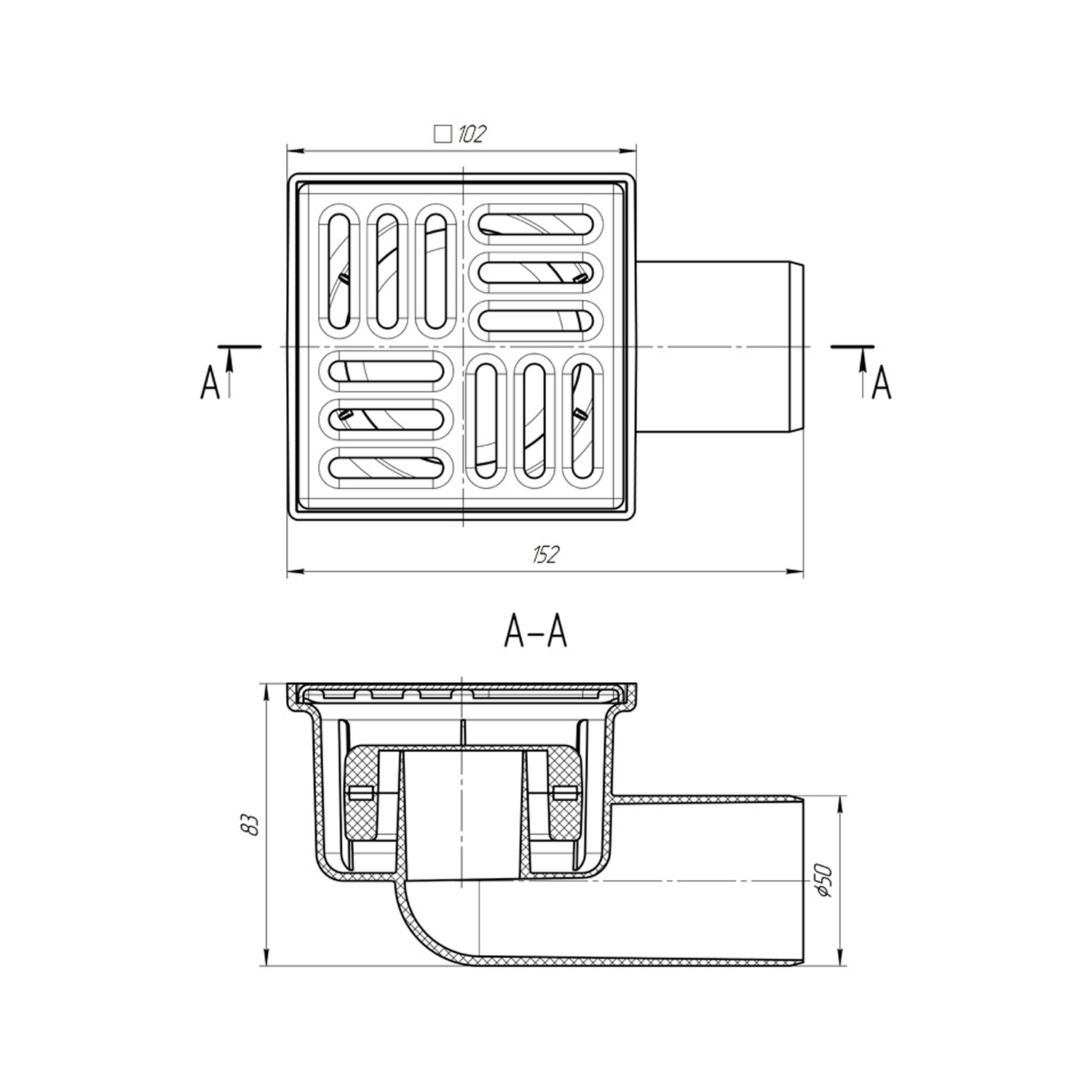 Опис Трап ANIplast з горизонтальним випуском 50 мм, з нержавіючою решіткою 10х10 см TQ5102EU код товару CV023041