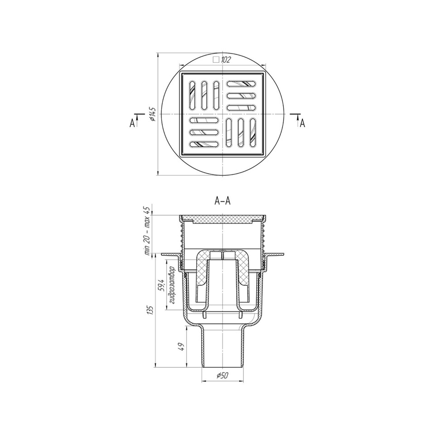 Опис Трап ANIplast з вертикальним випуском 50 мм, з решіткою 10х10 см TA5704 код товару CV025705
