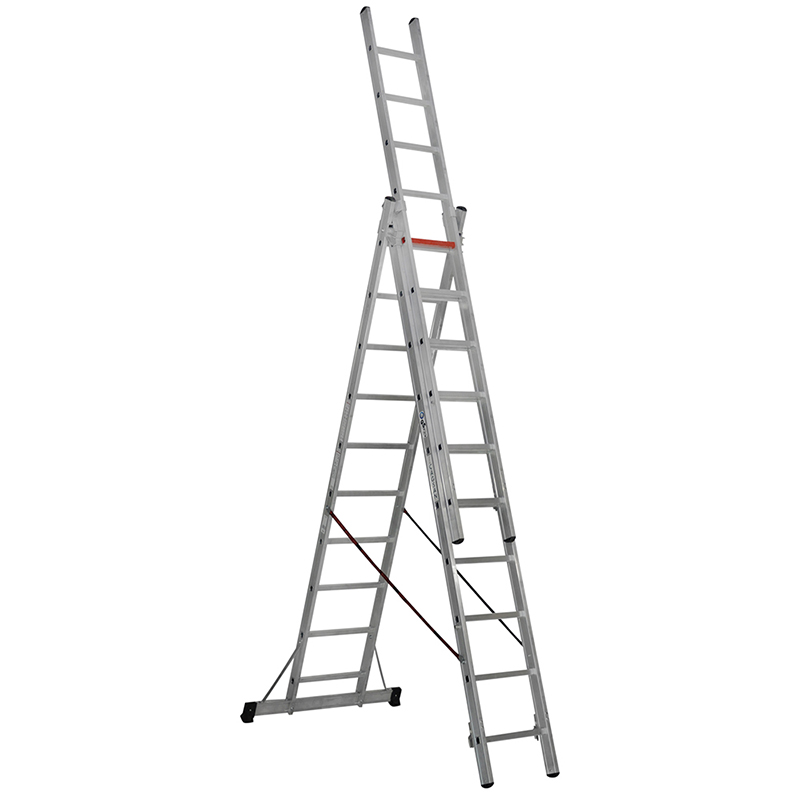 - трьохсекційна алюмінієва драбина VIRASTAR Triomax Pro 3x10 сходинок регулюється по висоті для забезпечення найкращих умов роботи;