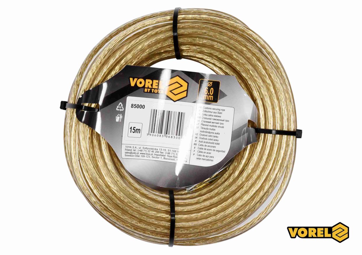 Опис Трос сталевий з наконечниками для пломб VOREL : Ø6 мм x 15 м [12] код товару 85000