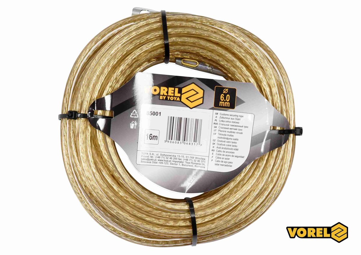 Опис Трос сталевий з наконечниками для пломб VOREL : Ø6 мм x 16 м [12] код товару 85001