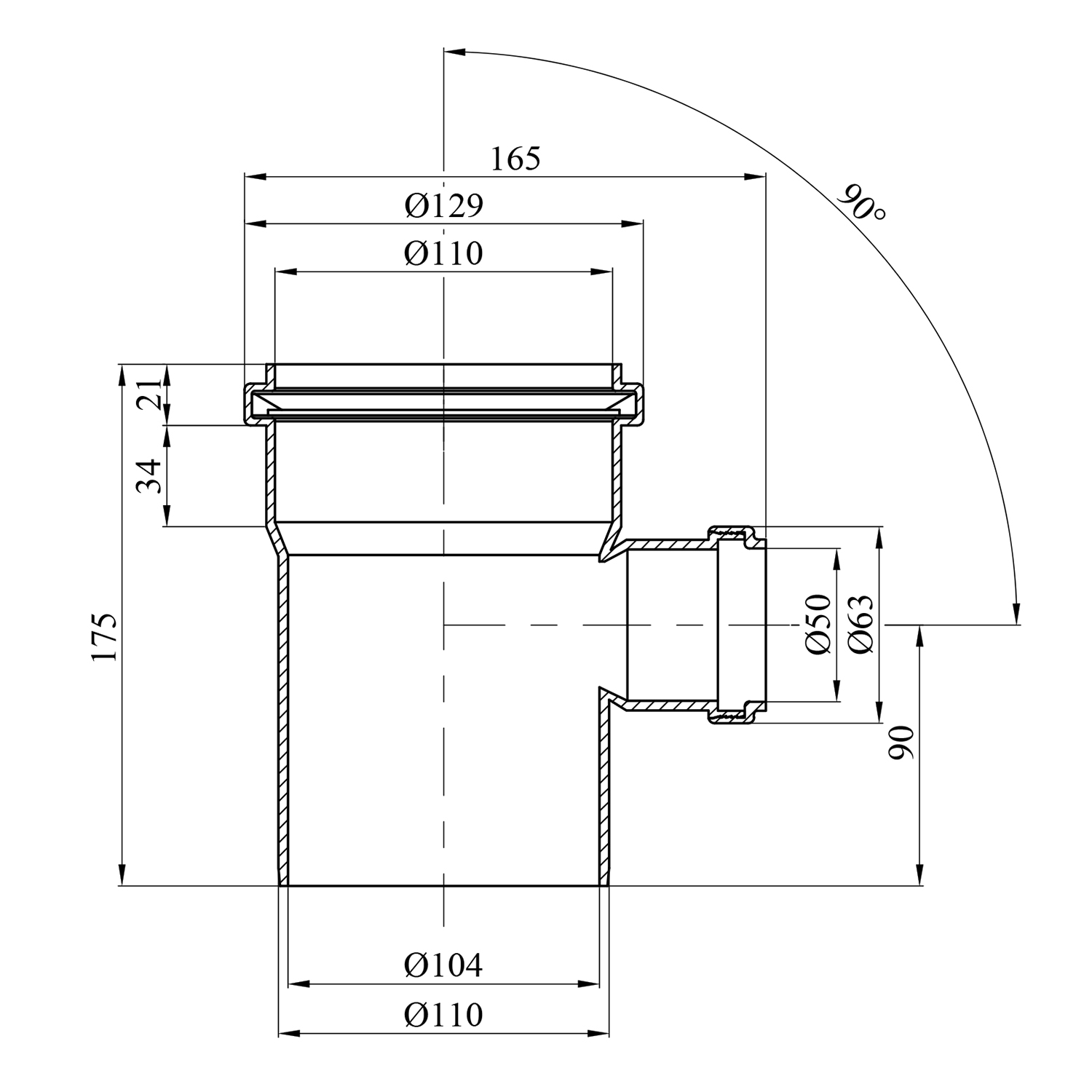 Характеристики Тройник для внутрішньої каналізації Rozma 100х50/90° код товару CV018429