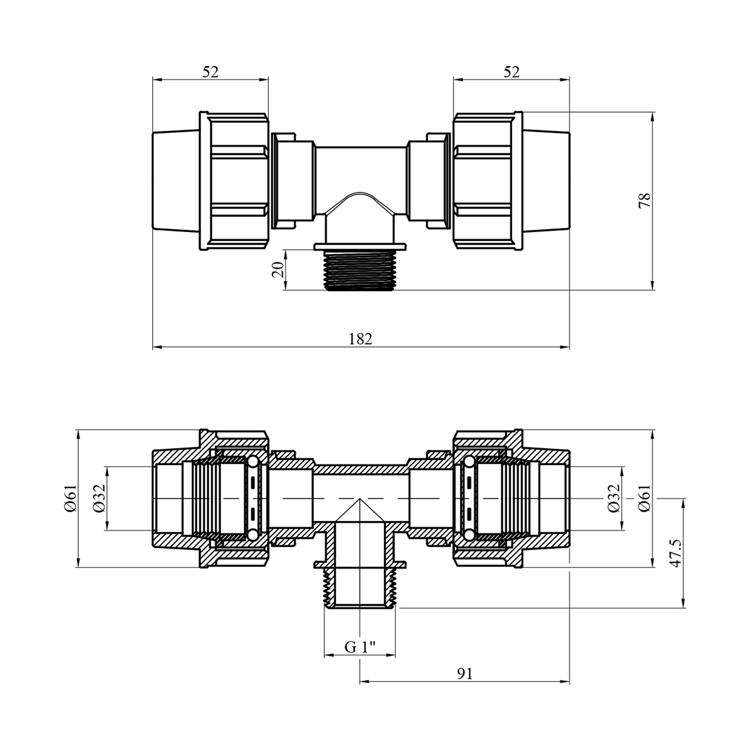 Тройник ПЕ Rozma 32х1х32 РН