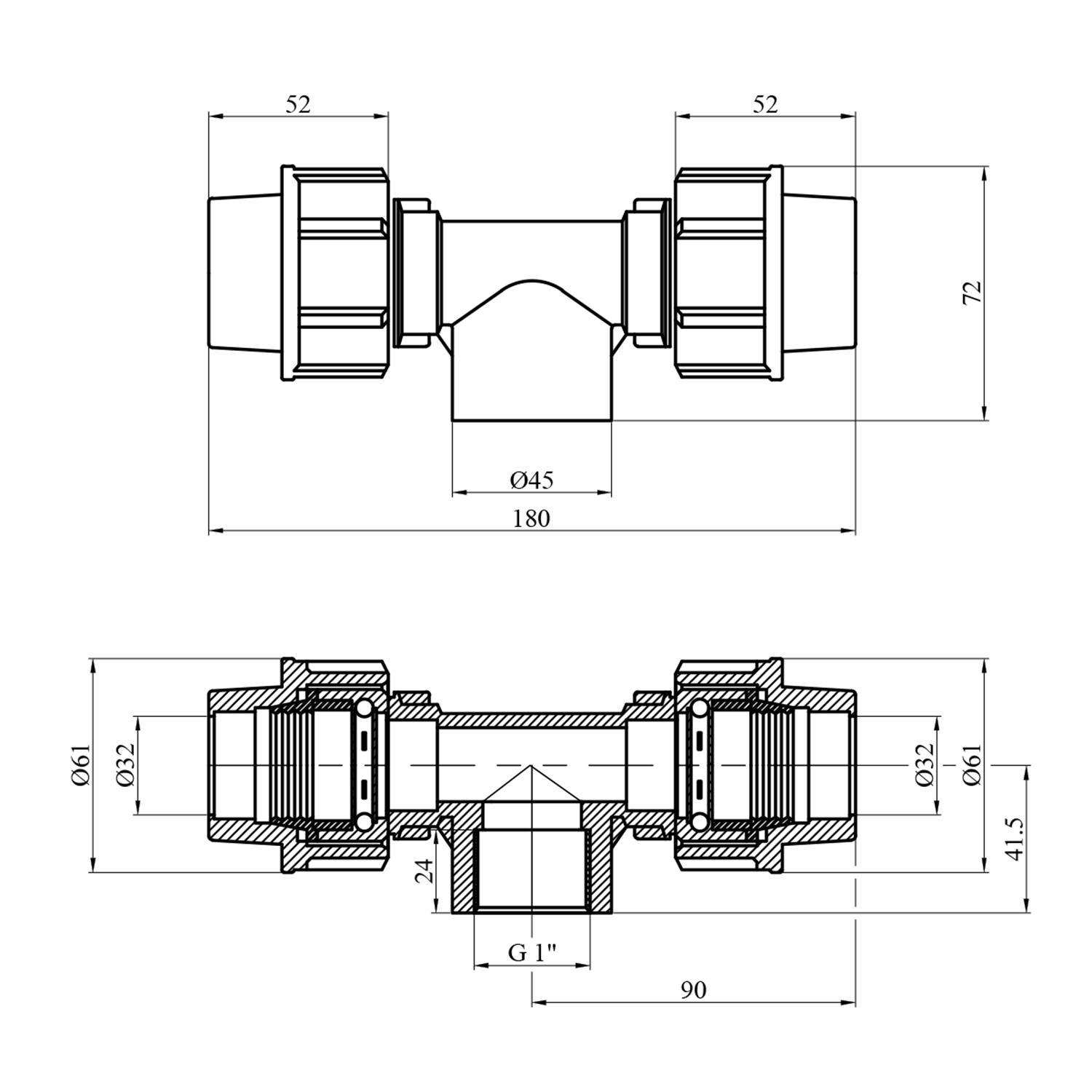 Опис Тройник ПЕ Rozma 32х1х32 РВ код товару CV023339