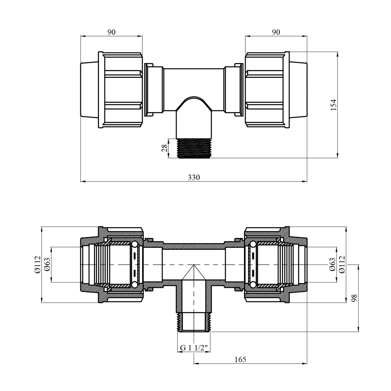 Характеристики Тройник ПЕ Rozma 63х1 1/2х63 РН код товару CV023466