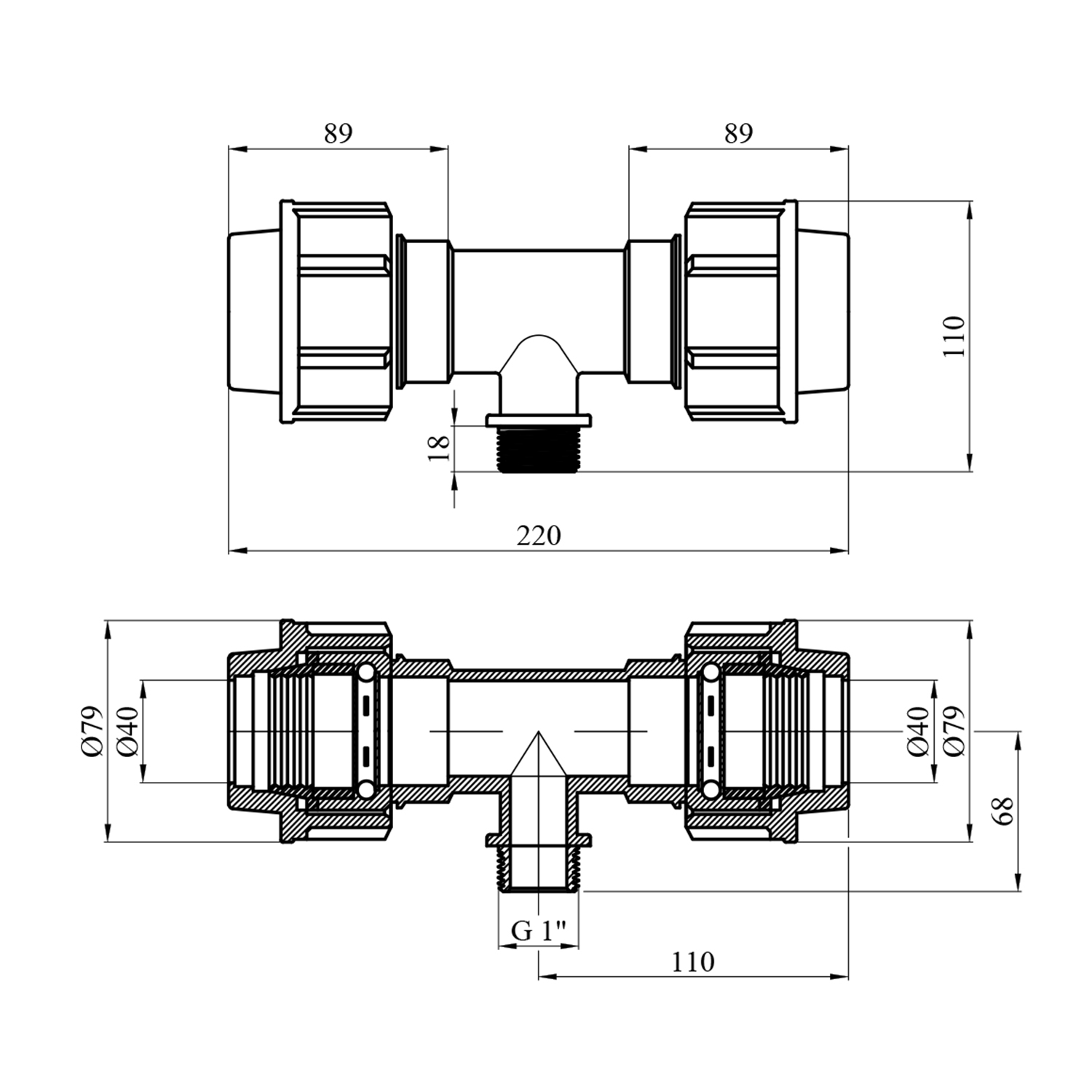 Опис Тройник ПЭ SantehPlast 40х1"х40 РН код товару CV020240