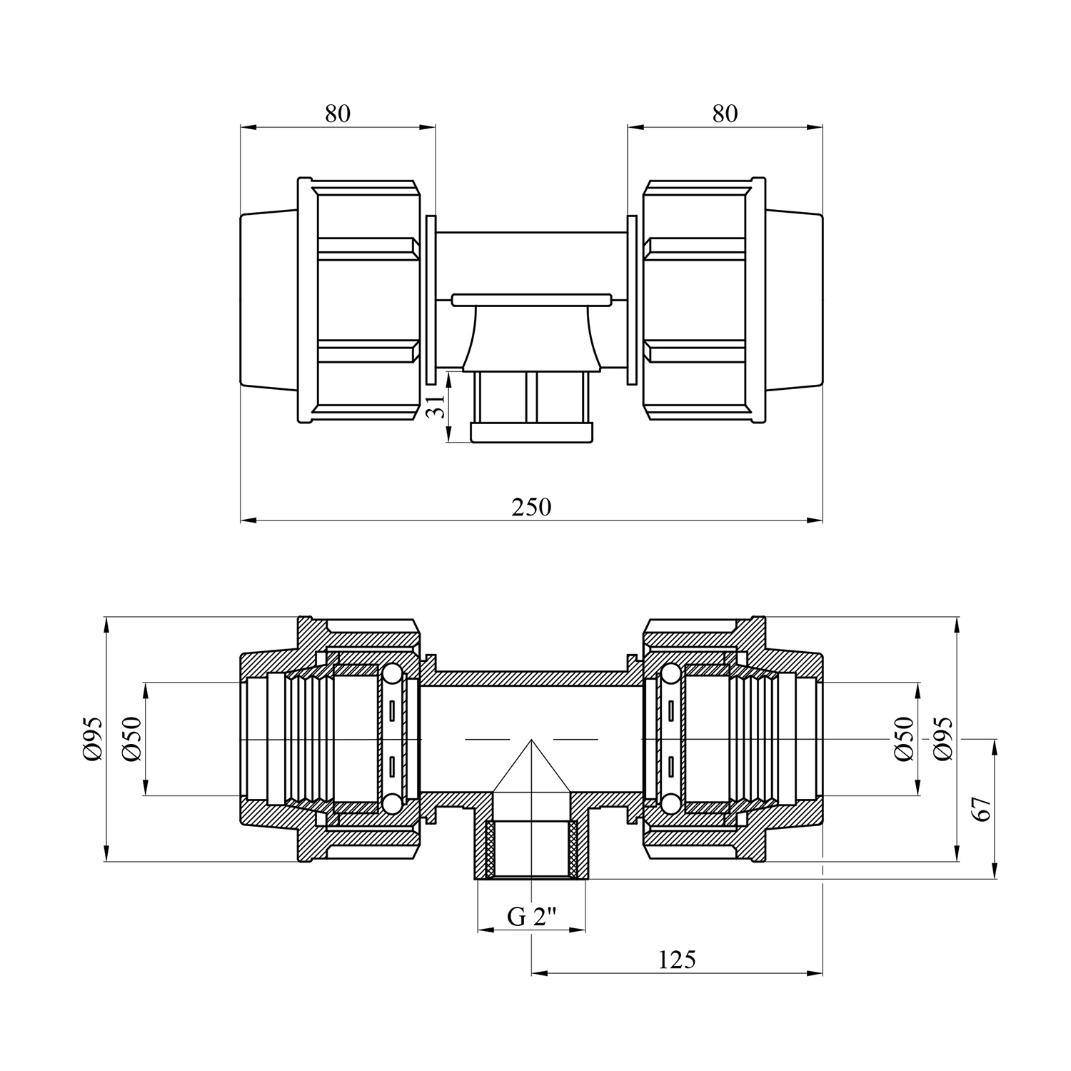 Характеристики Тройник ПЭ SantehPlast 50х2"х50 РВ код товару CV020604