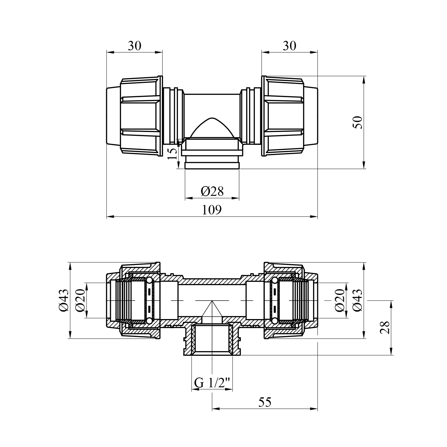 Тройник ПЕ SPT 20х1/2х20 РВ