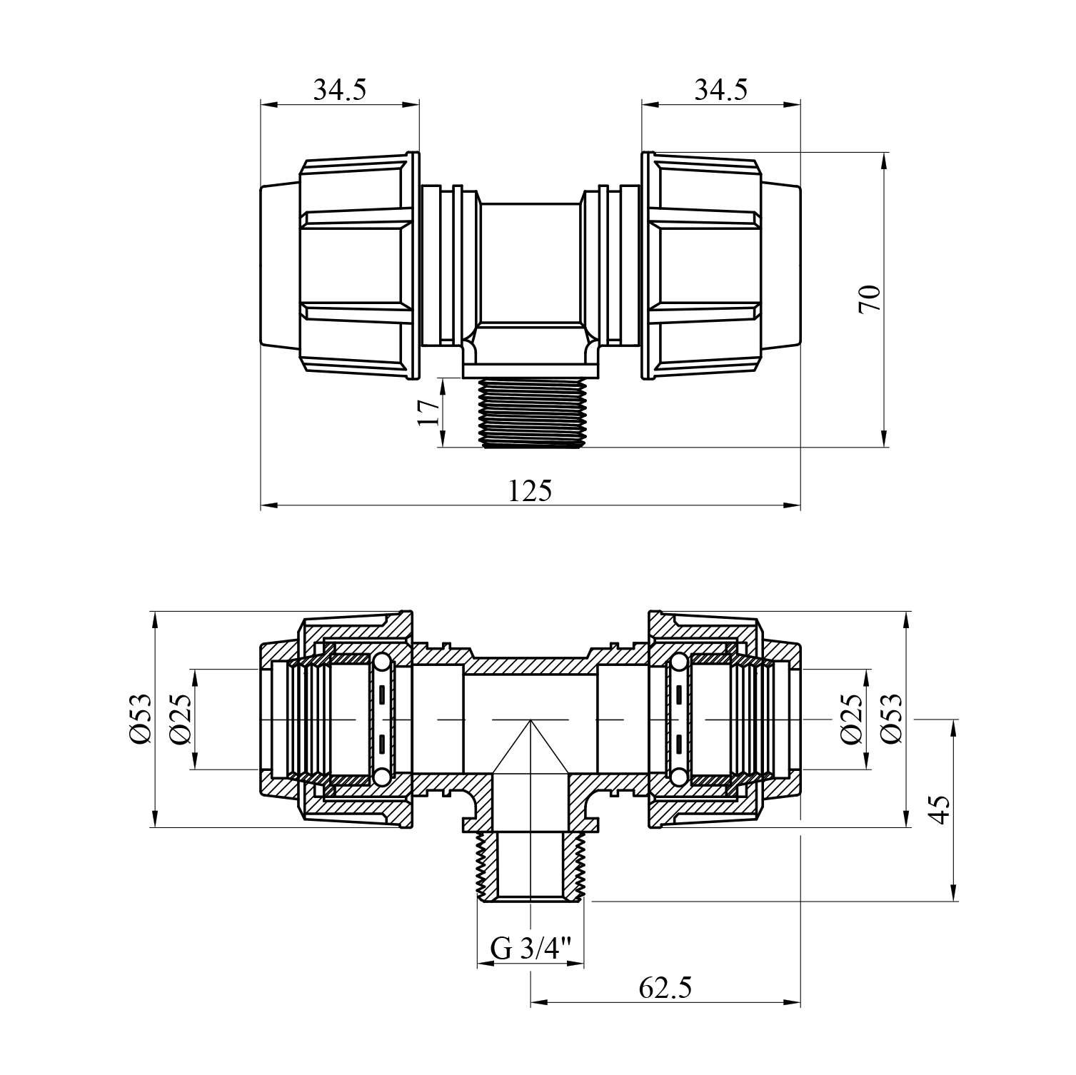 Характеристики Тройник ПЕ SPT 25х3/4х25 РН код товару CV024722