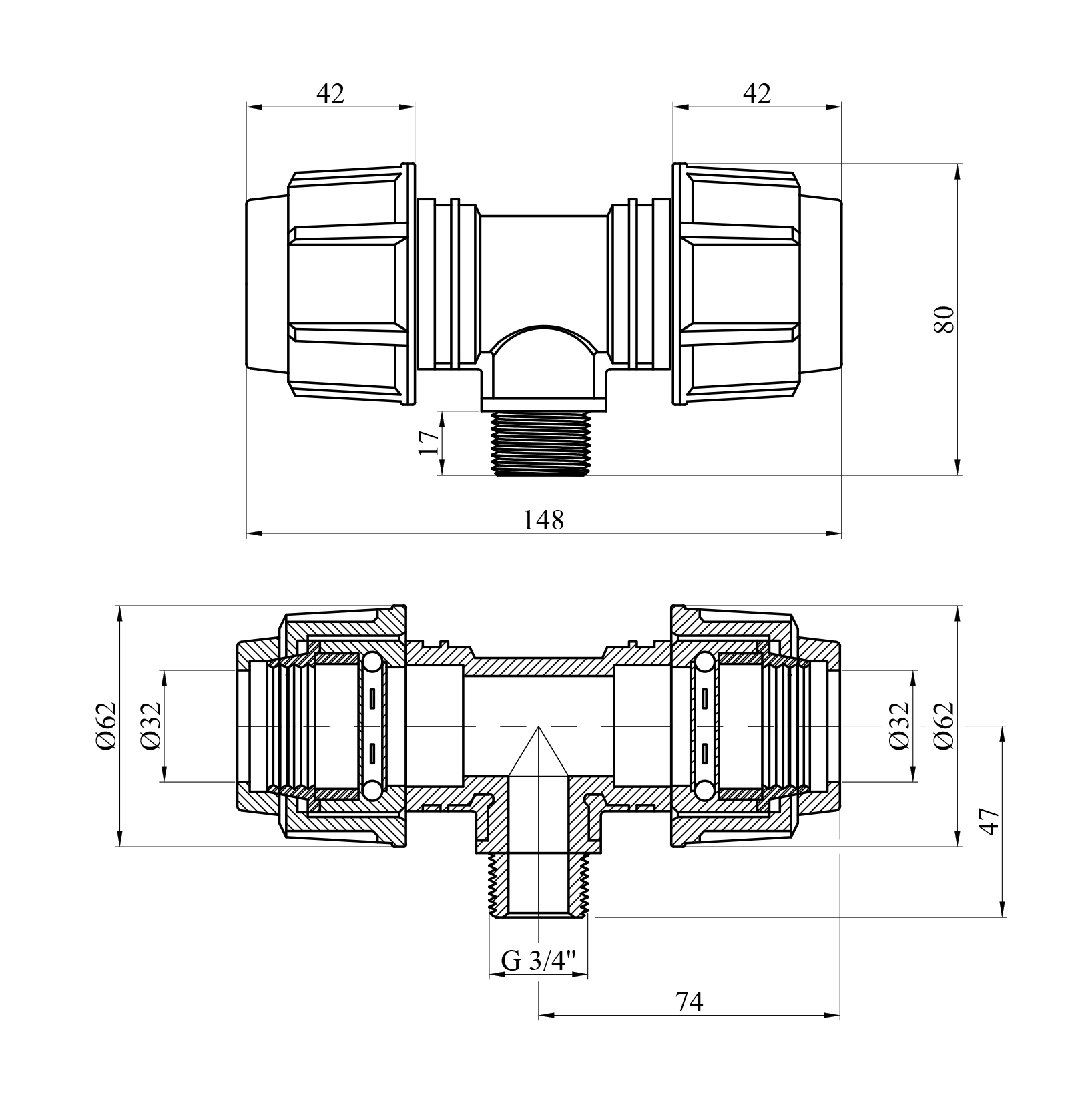 Опис Тройник ПЕ SPT 32х3/4х32 РН код товару CV024725