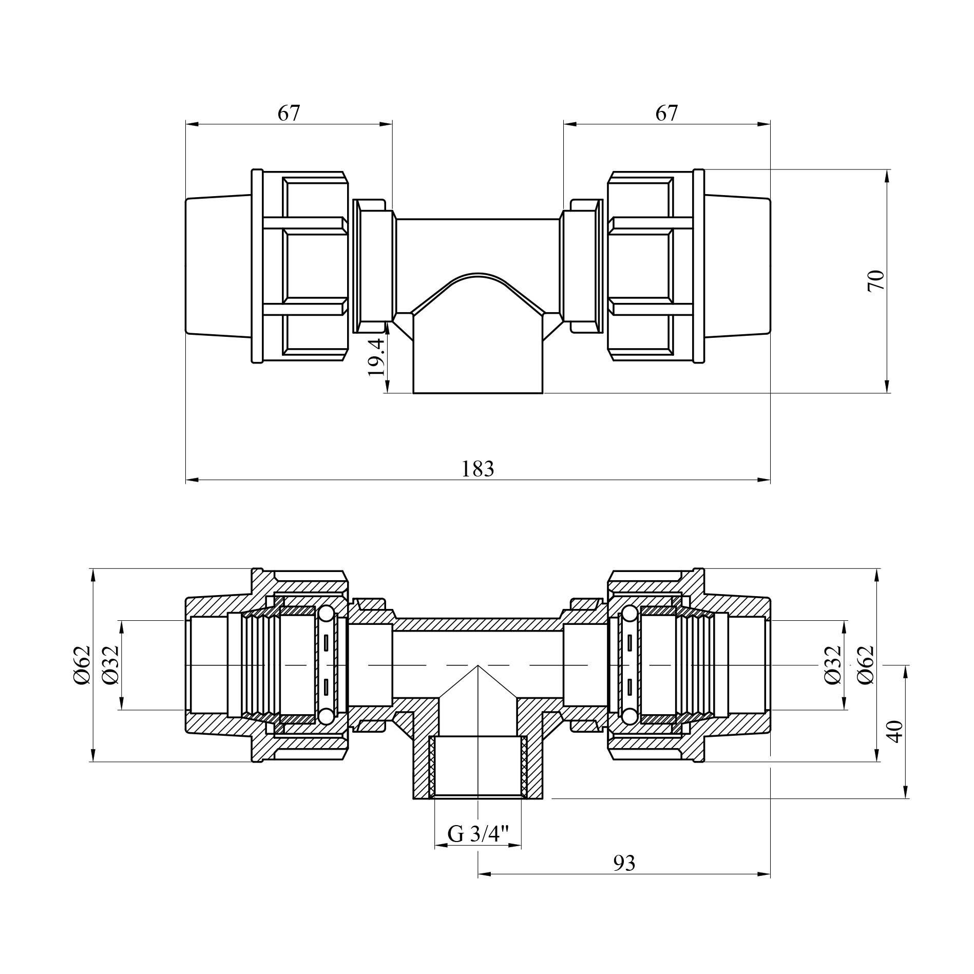 Характеристики Тройник ПЕ STR 32х3/4х32 РВ код товару CV028656