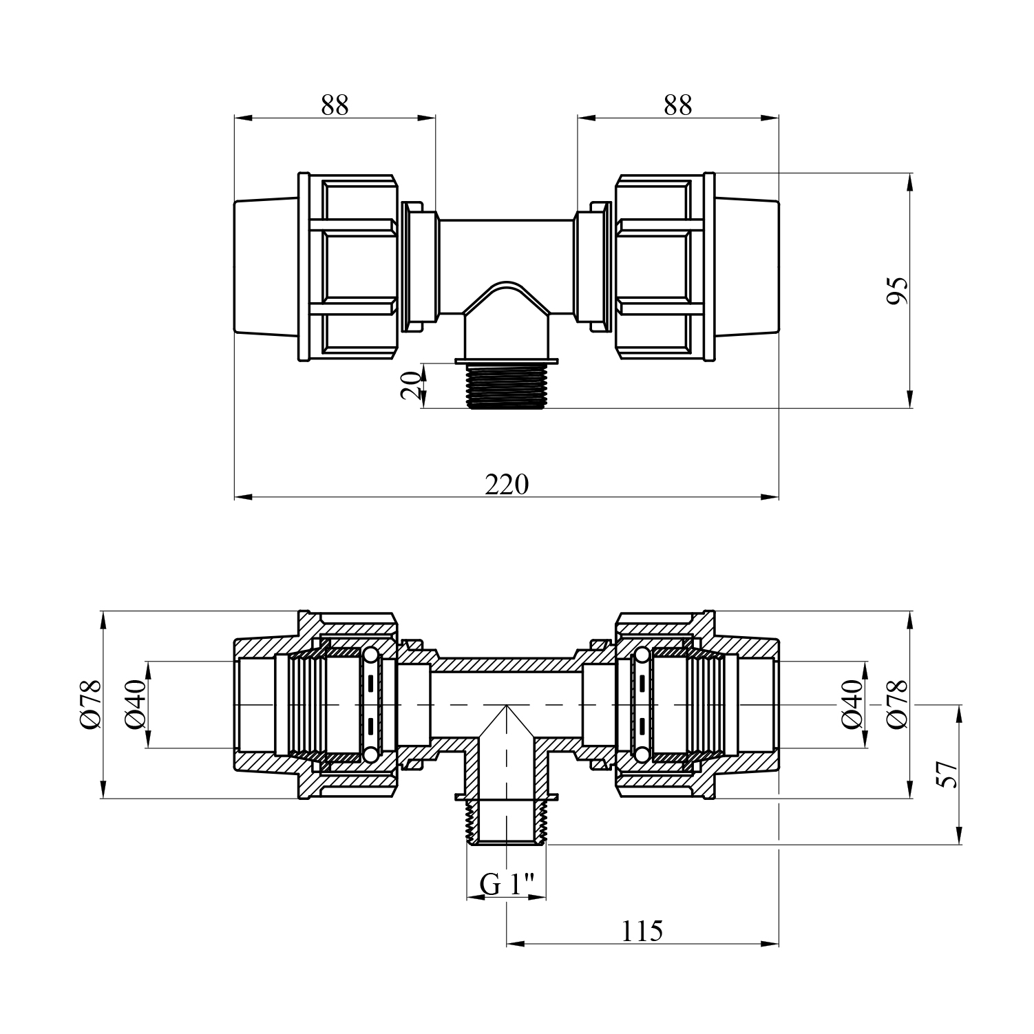 Характеристики Тройник ПЕ STR 40х1х40 РН код товару CV030935