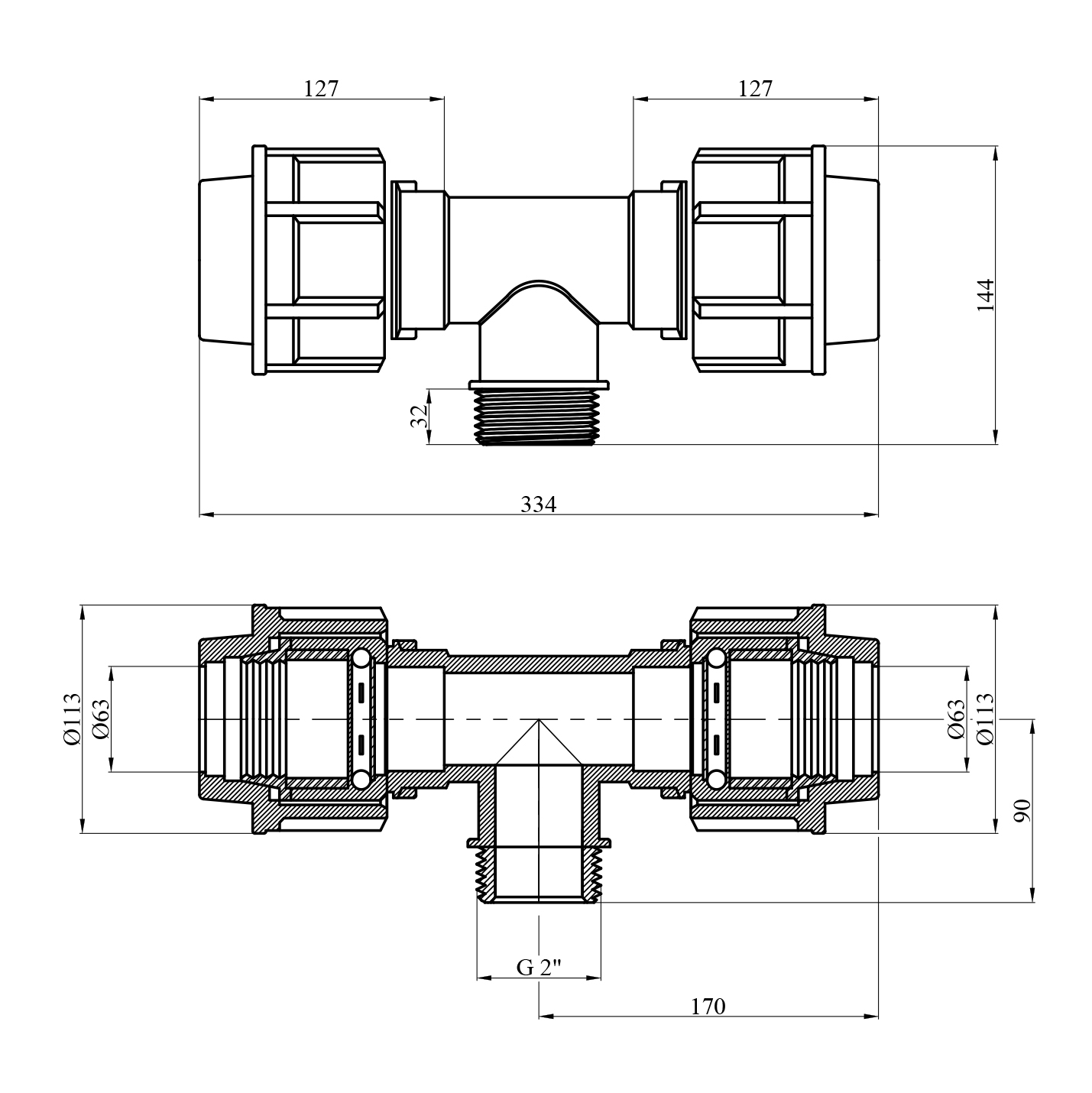 Характеристики Тройник ПЕ STR 63х2х63 РН код товару CV028650
