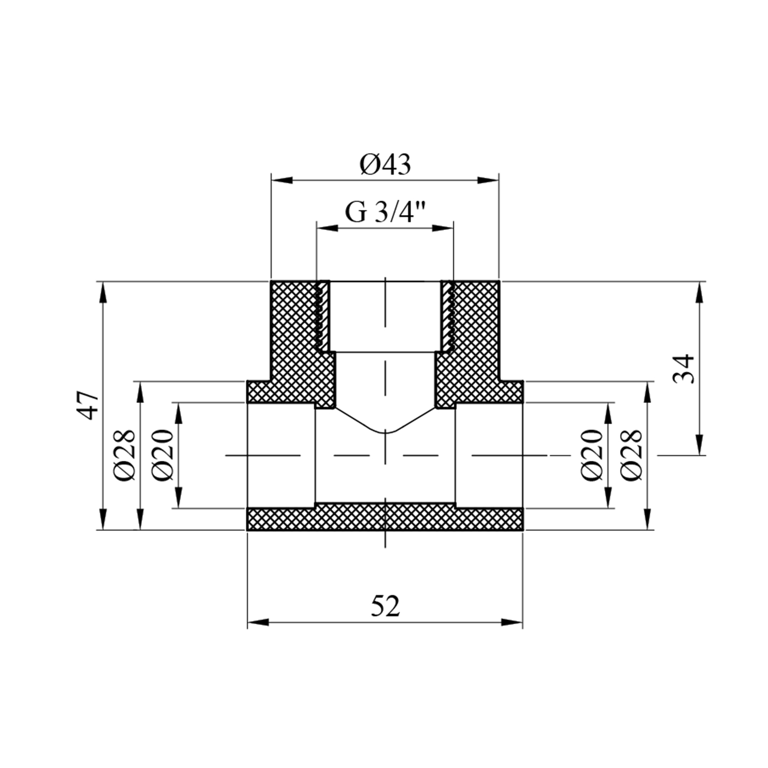 - Розмір: 20 мм (вхід) х 3/4 дюйма (вихід)