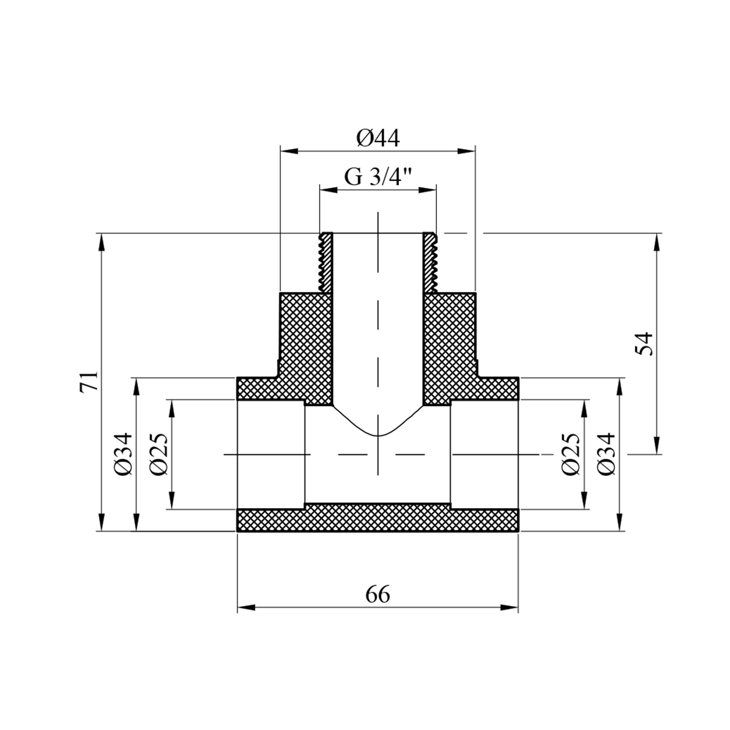 - Розмір: 25 мм (внутрішній) / 3/4 дюйма (зовнішній)