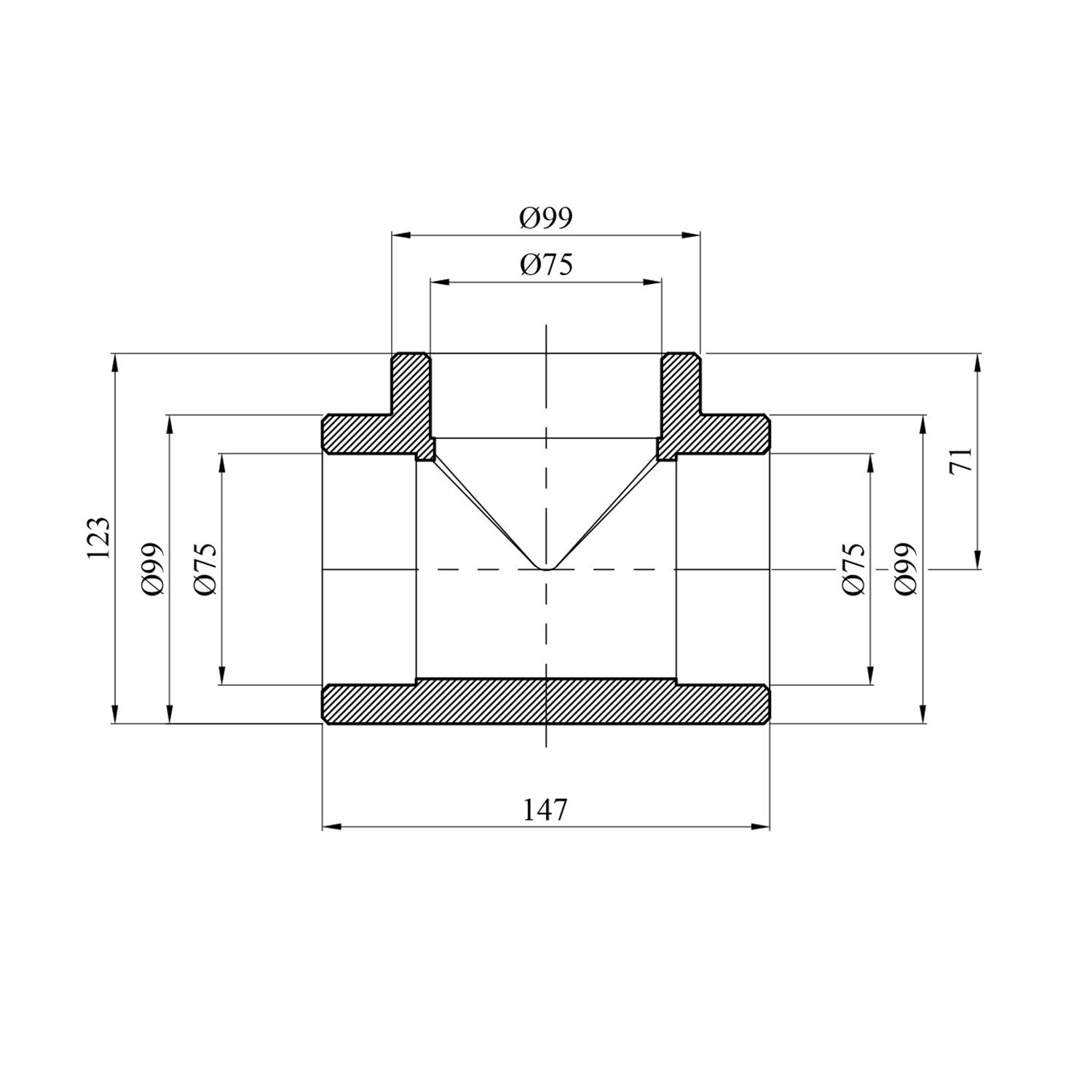 Тройник PPR GrandiTherm 75 мм