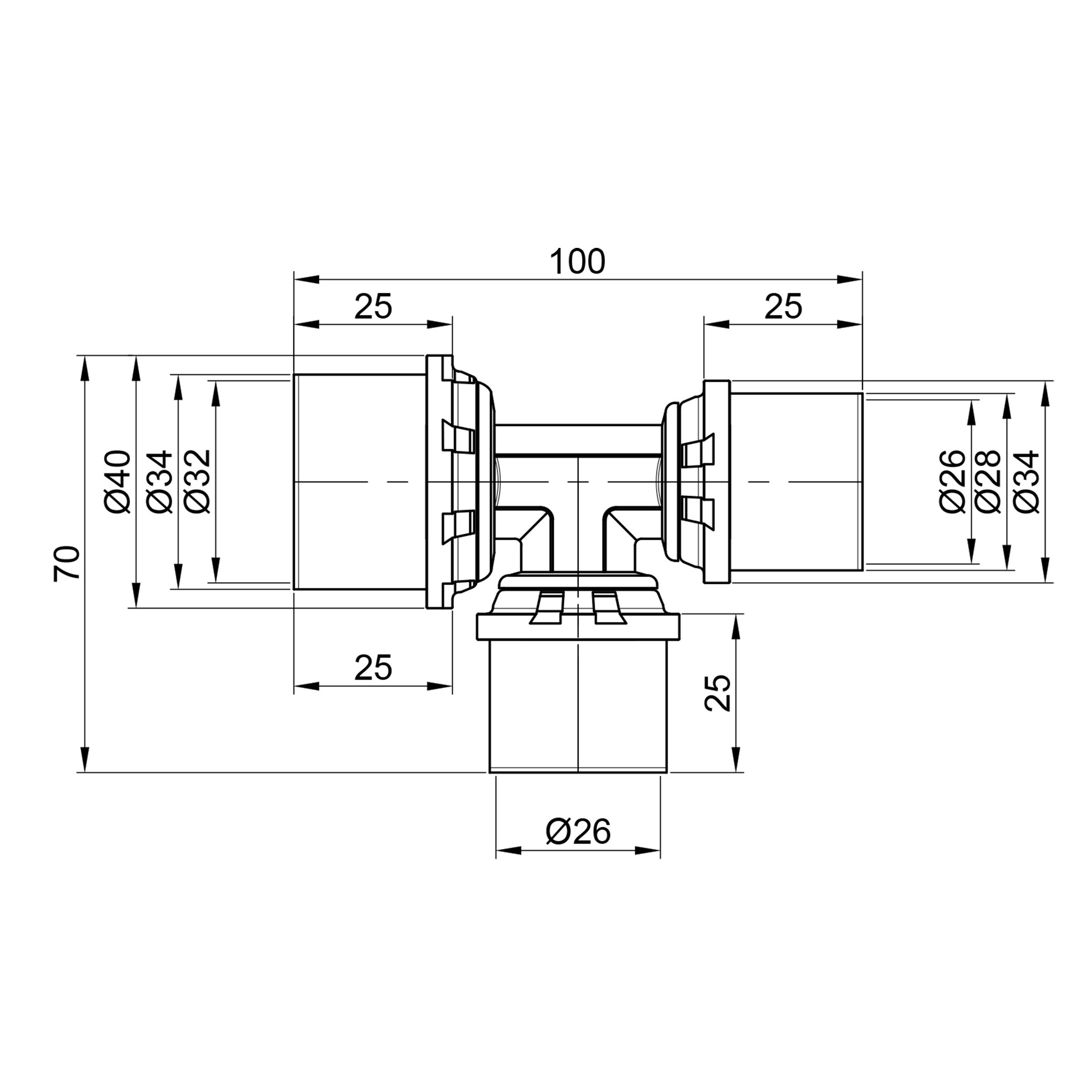 Характеристики Тройник пресс Icma 26х26х32 №406 код товару SD00009085