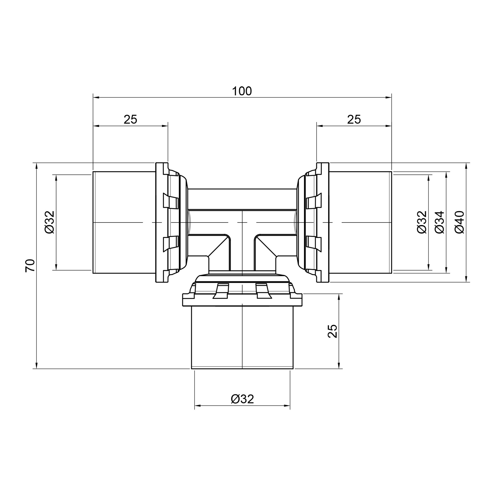 Характеристики Тройник пресс Icma 32х32х32 №406 код товару SD00009152