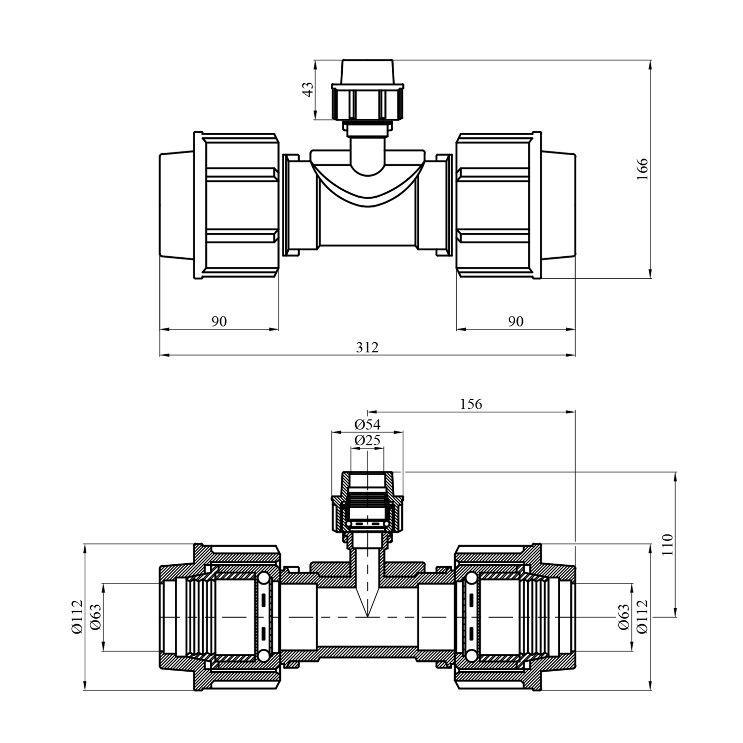 Редукційний трійник ПЕ Rozma 63x25x63 мм