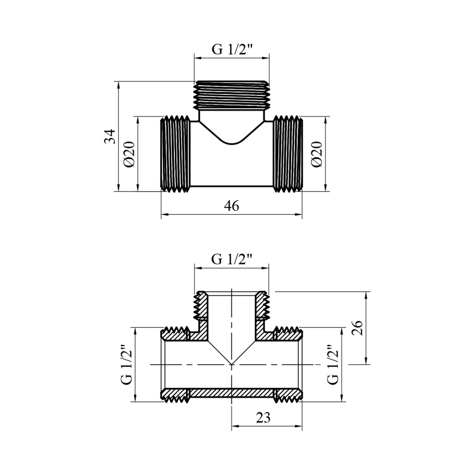 Характеристики Тройник STA 1/2 ННН латунний код товару CV009501