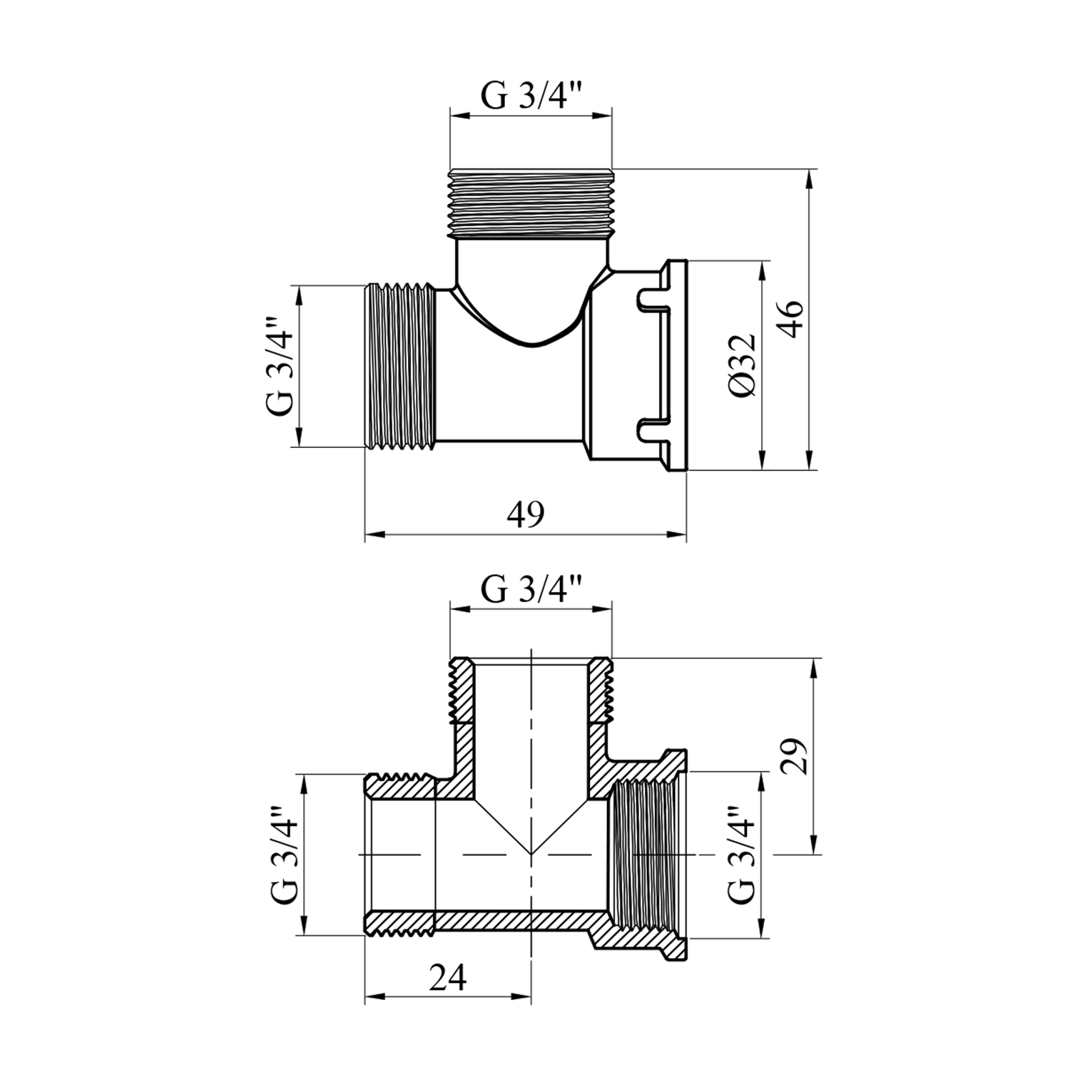 Опис Тройник STA 3/4 ННВ латунний код товару CV016909