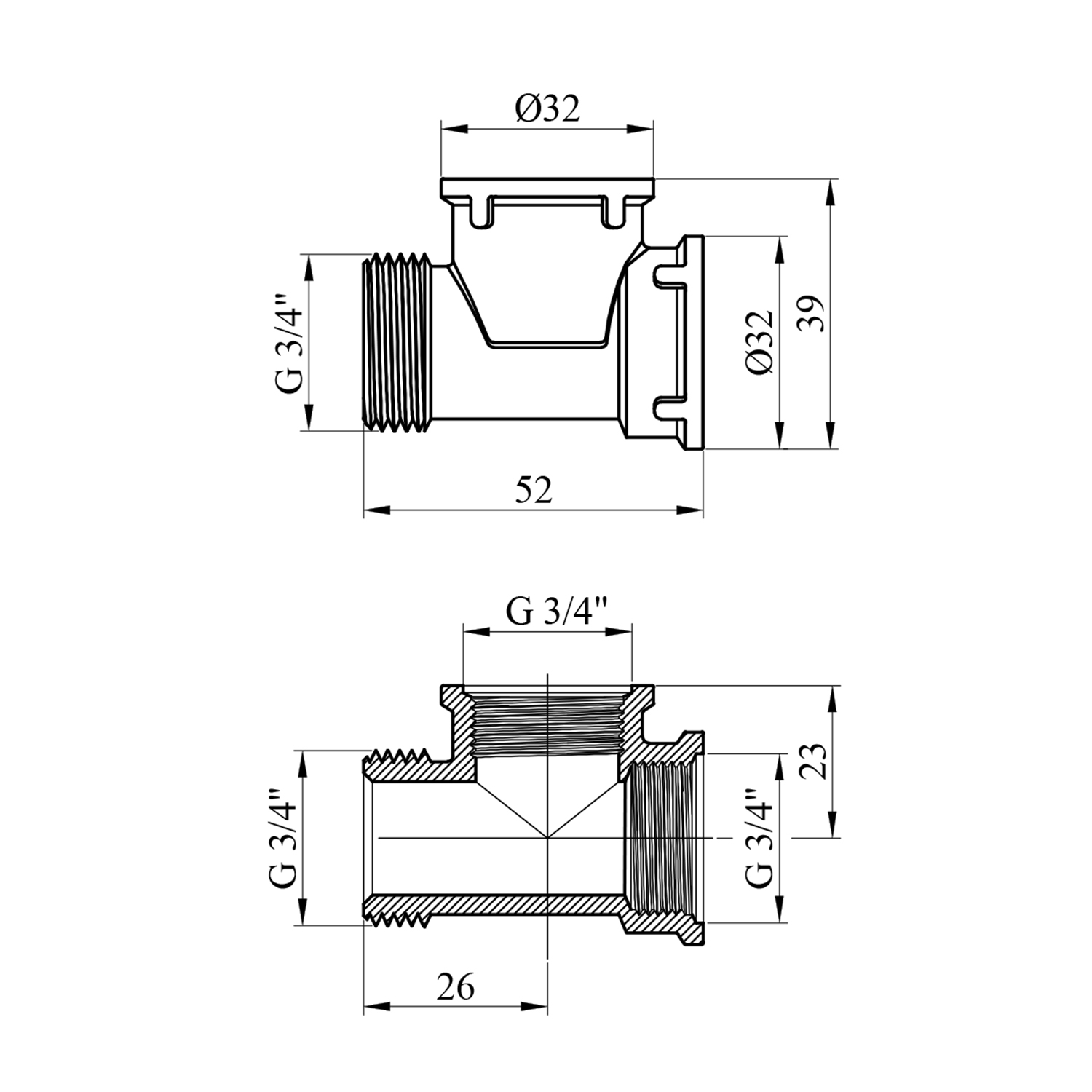 Характеристики Тройник STA 3/4 ВВН латунний код товару CV016184