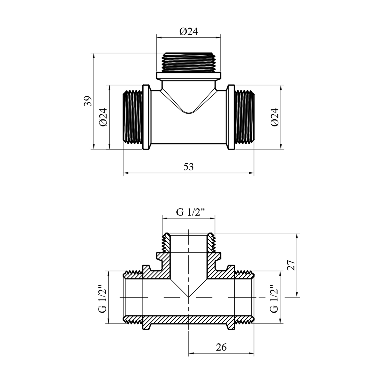 Опис Тройник STA Premium 1/2 ННН нікельований код товару CV017740