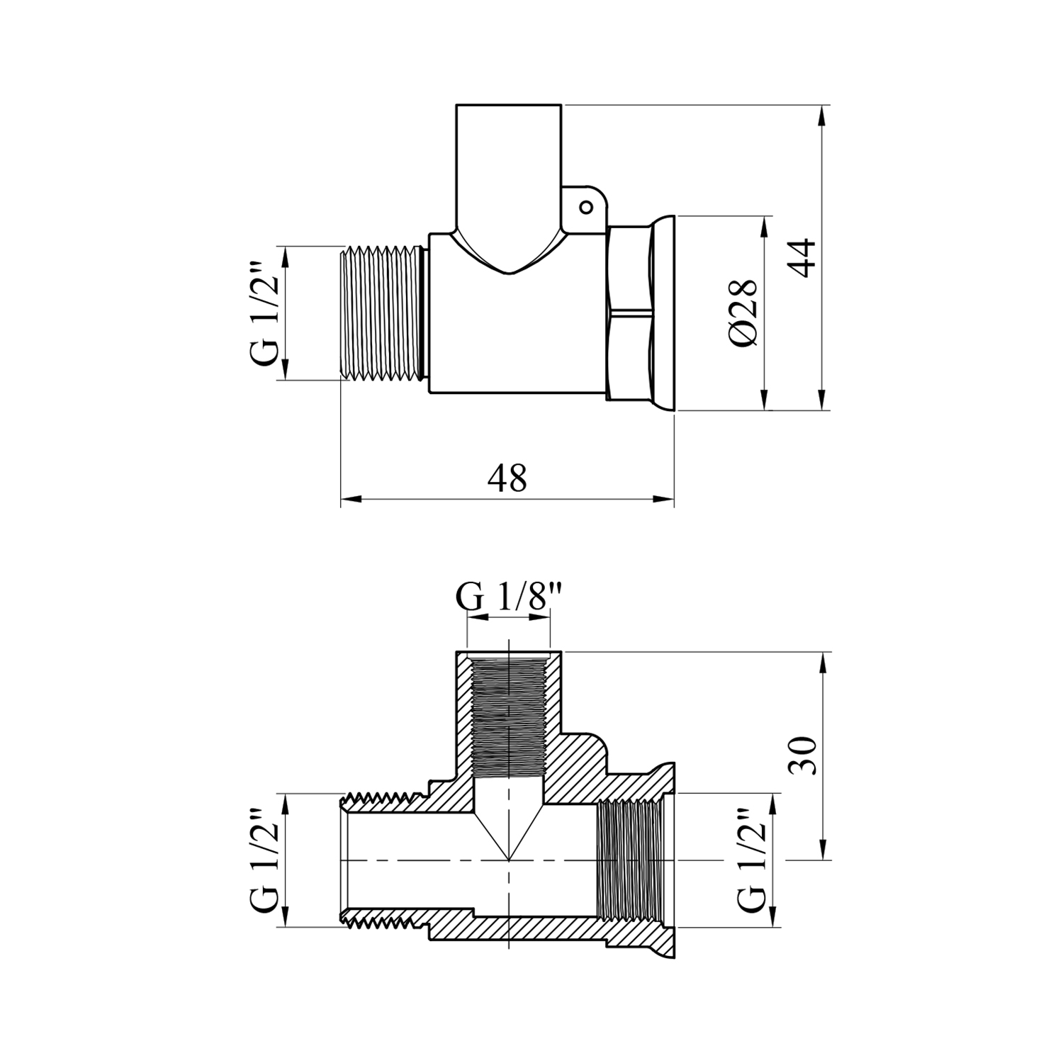 Характеристики Тройник посилений LexLine 1/2х1/2''хМ10 НВВ латунний УК0243-В код товару CV032163