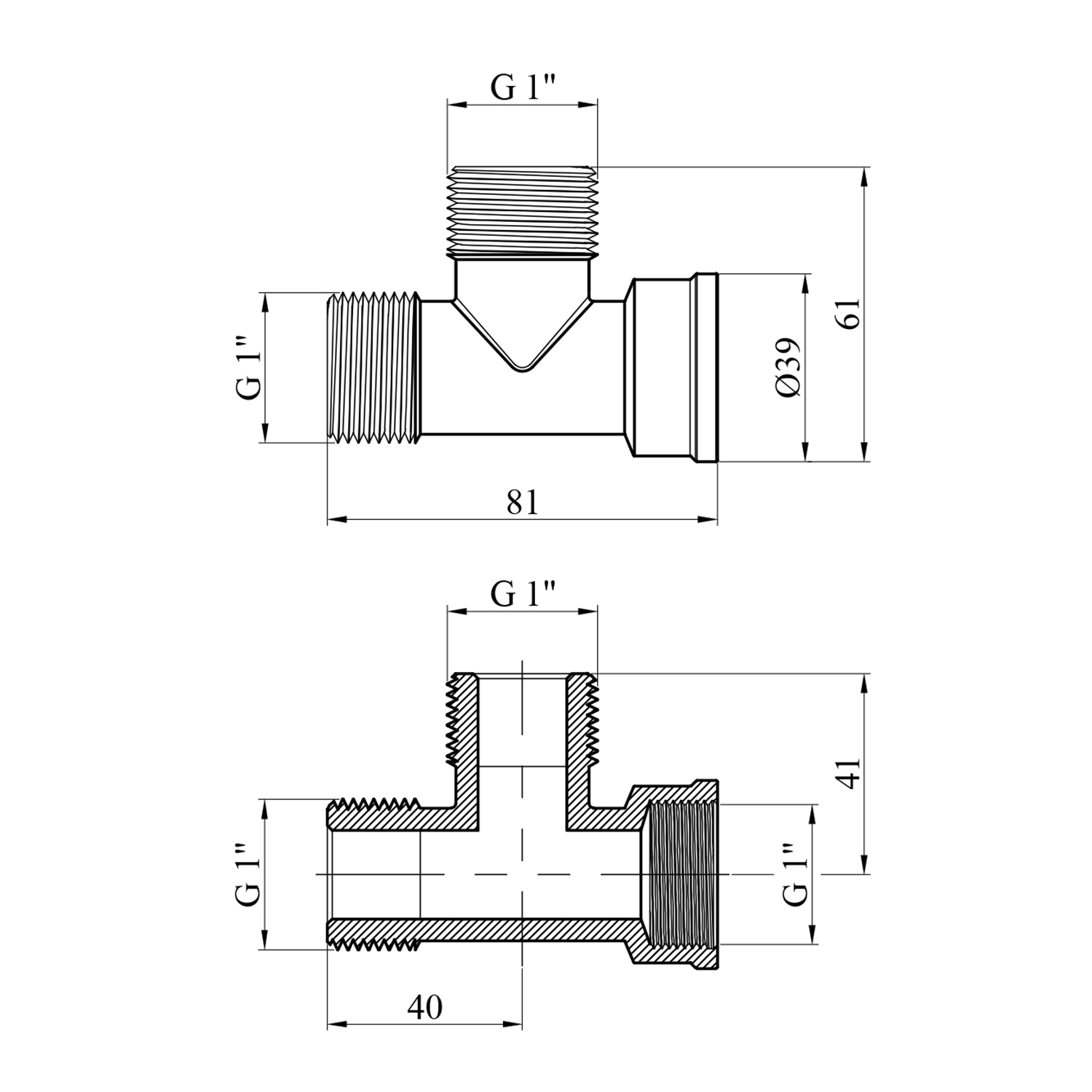Опис Тройник посилений LexLine 1 ННВ латунний УК0231-В код товару CV017053