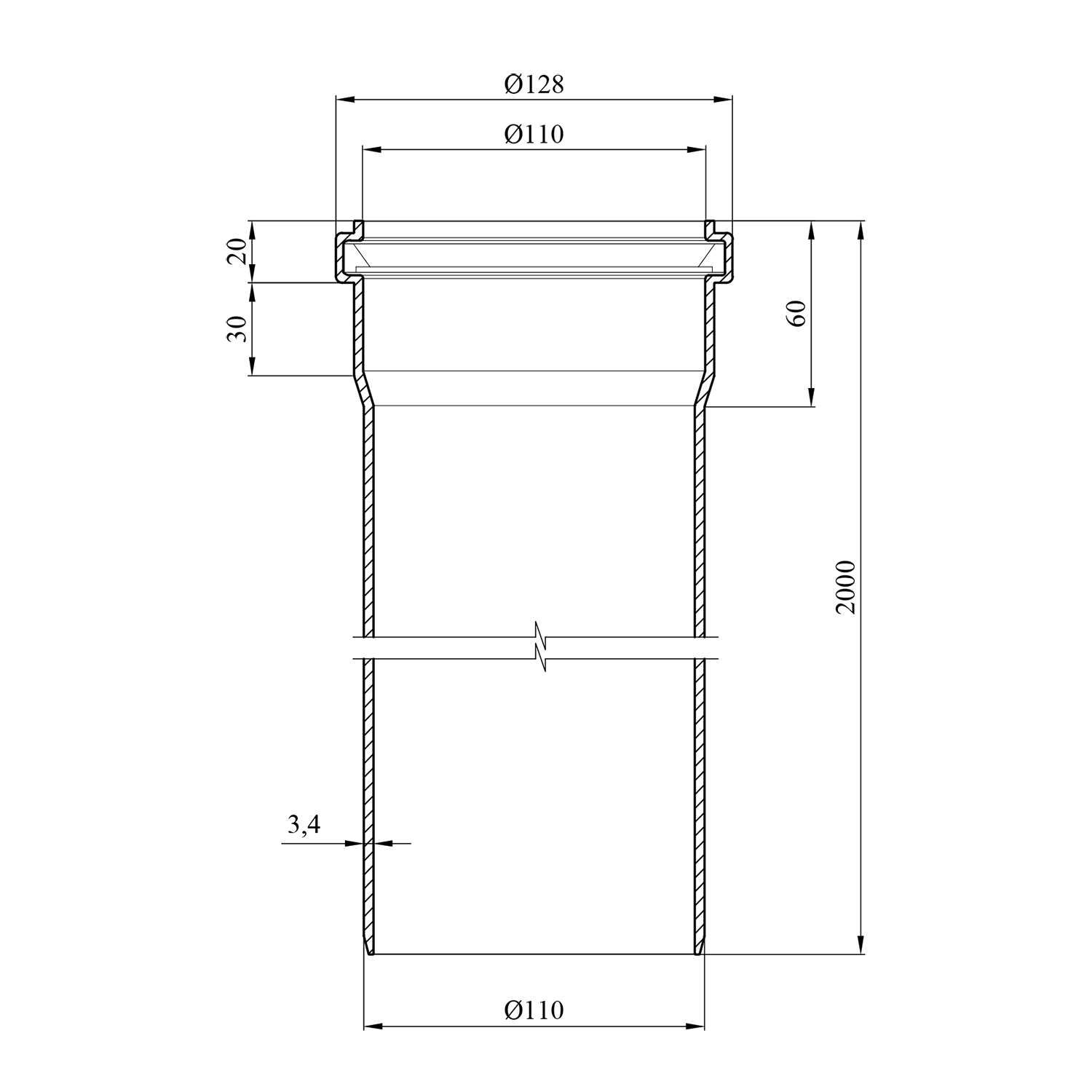 - Товщина стінки: 3,4 мм