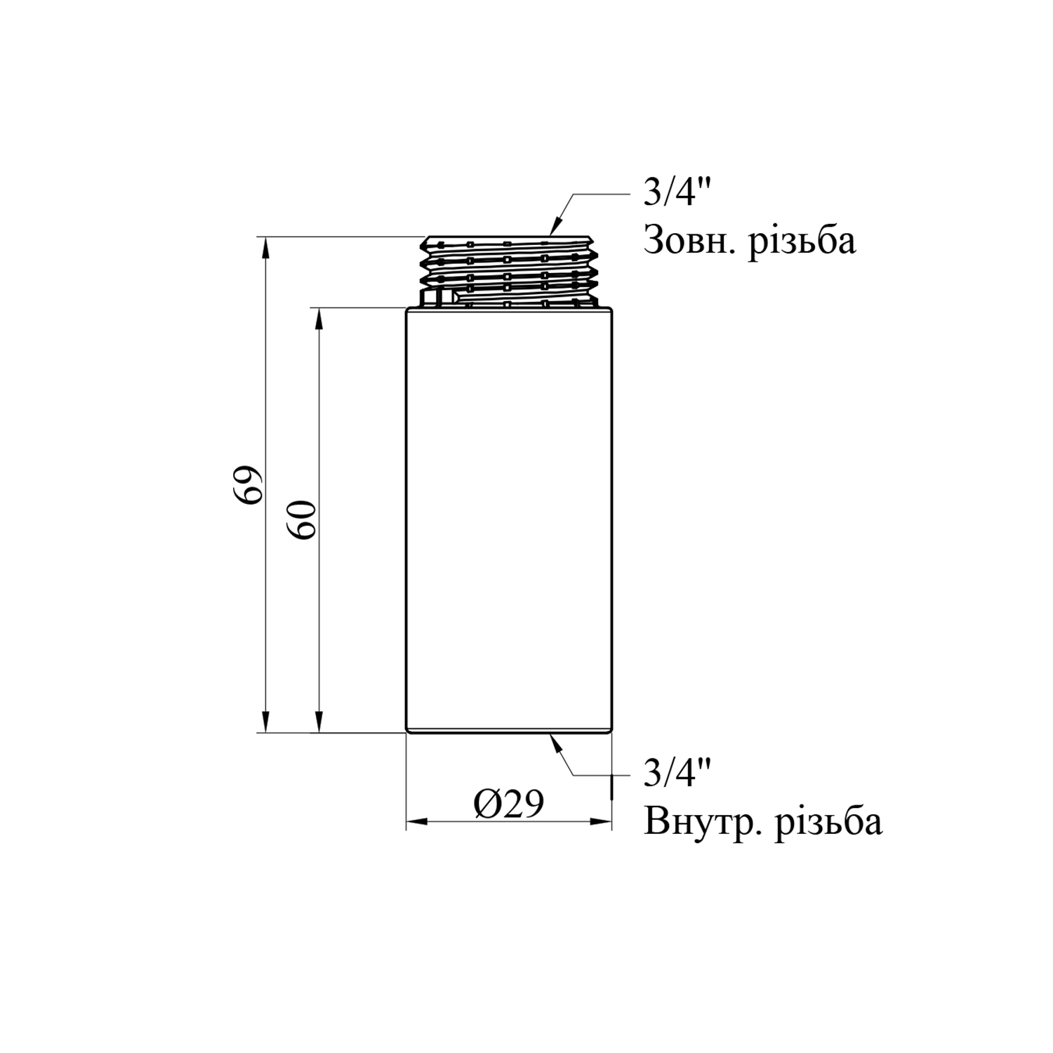 Опис Подовжувач Karro 3/4 ВН, L=60 мм хромований KR-3209 код товару CV022381