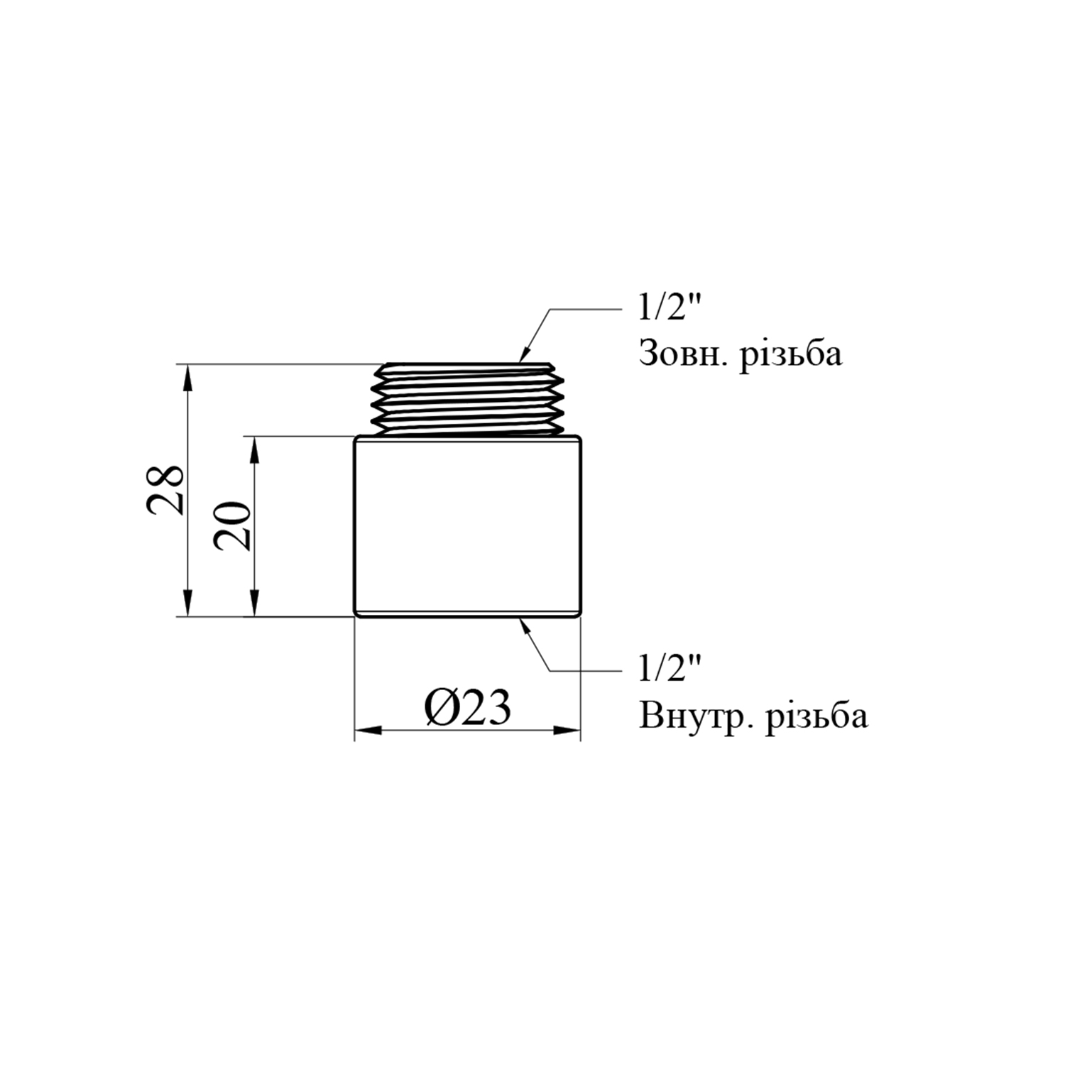 Характеристики Подовжувач STA 1/2 ВН, L=20 мм латунний код товару CV010591