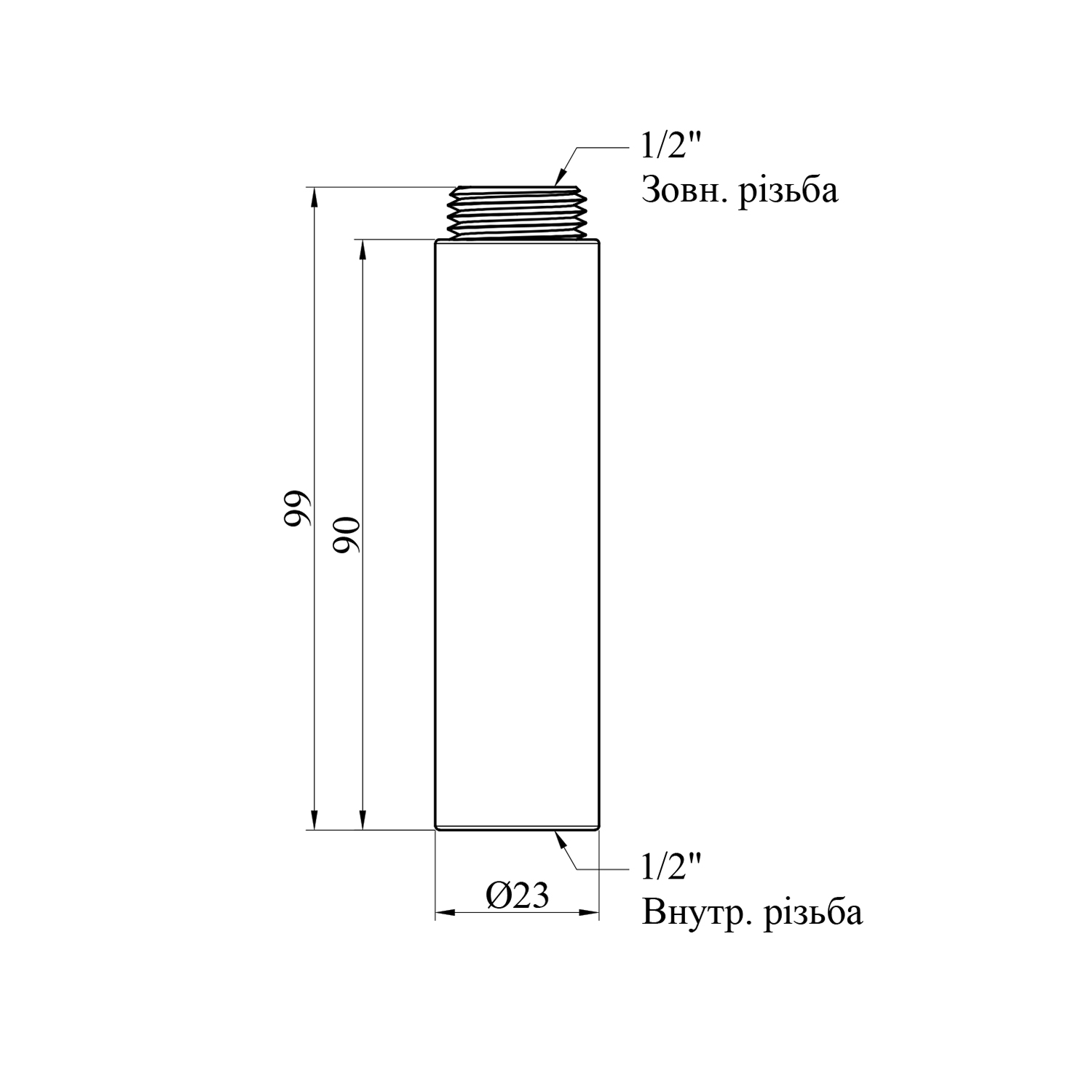Опис Подовжувач STA 1/2 ВН, L=90 мм латунний код товару CV014410