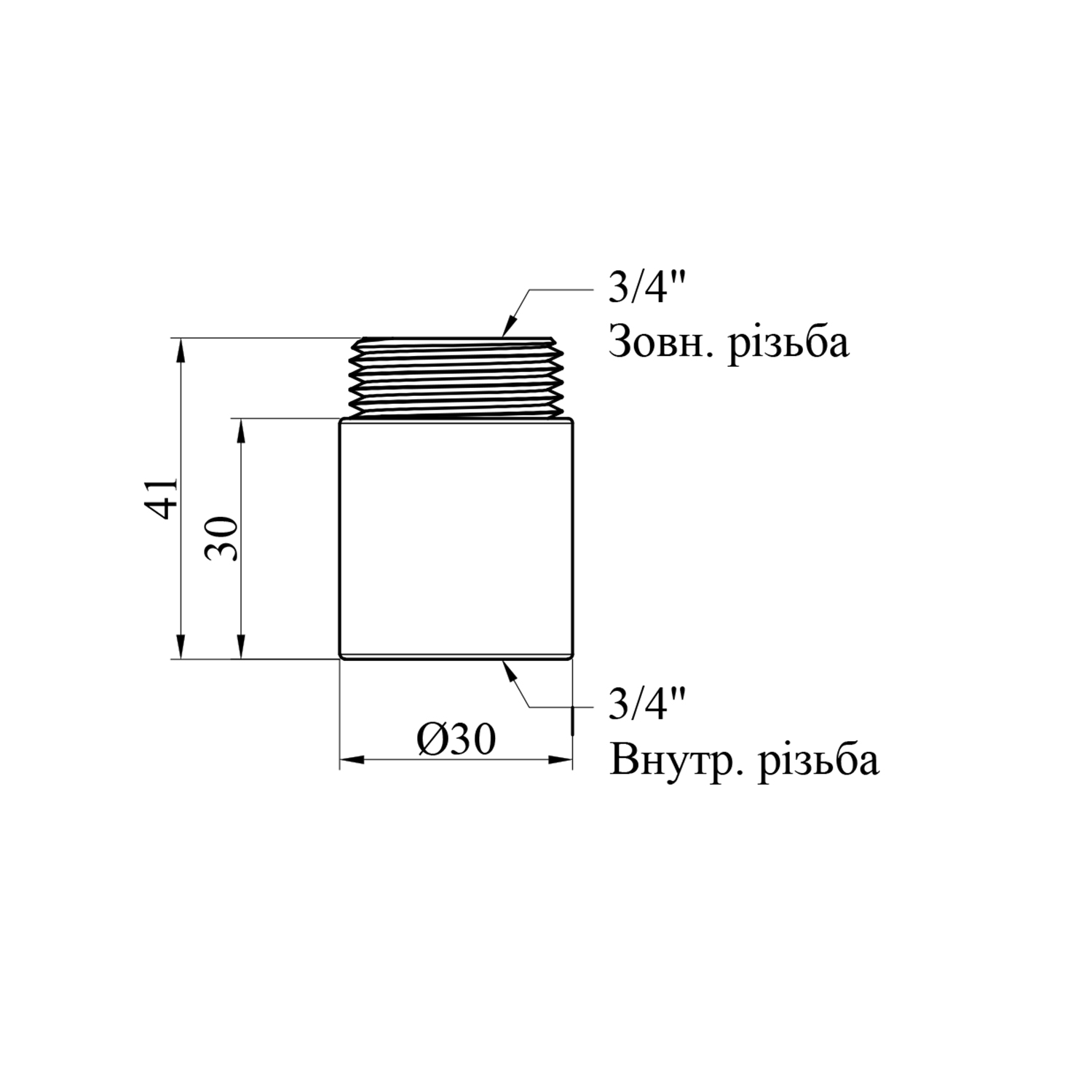 Характеристики Подовжувач STA 3/4 ВН, L=30 мм латунний код товару CV016045